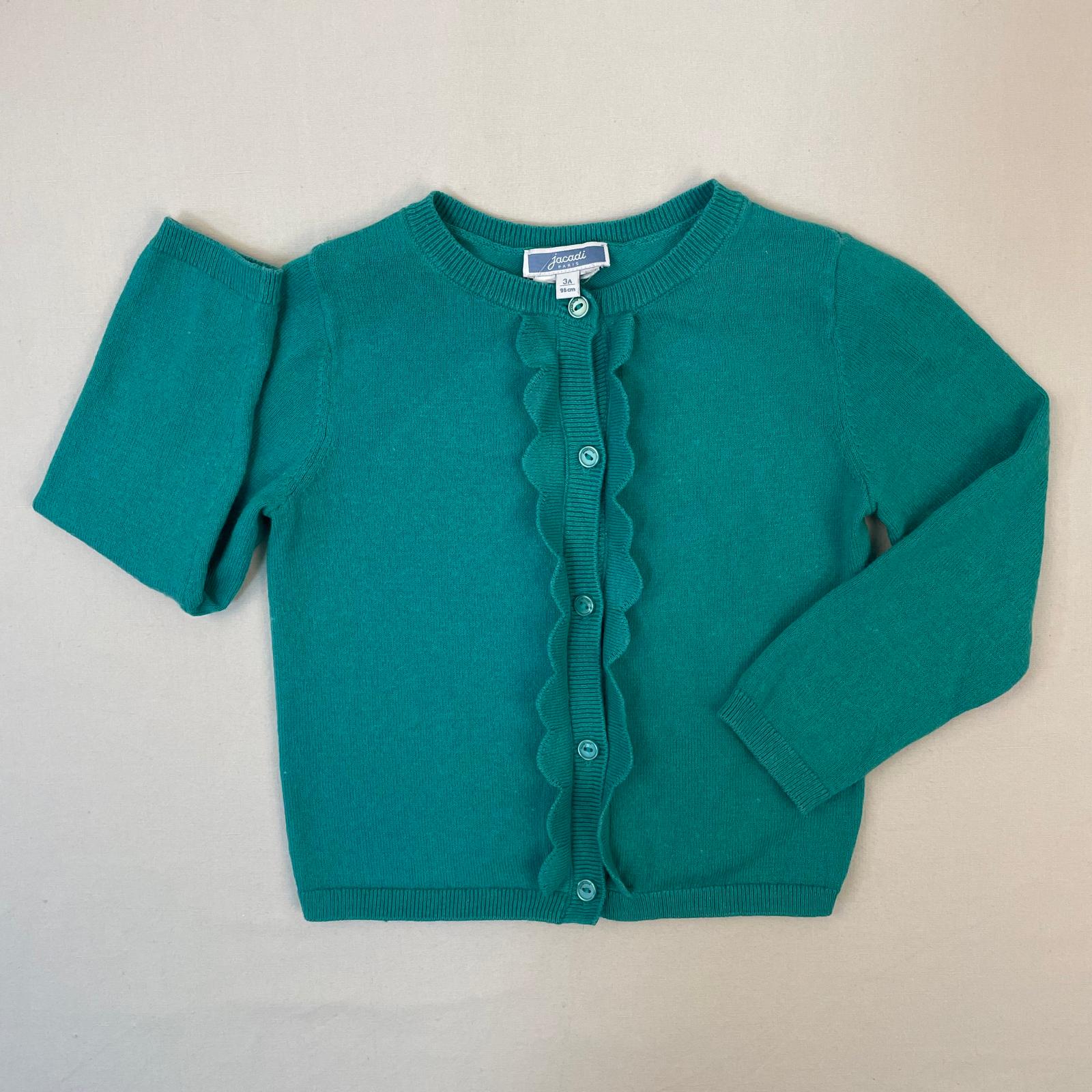 - Cardigan col rond, uni, probablement mélange de coton et laine