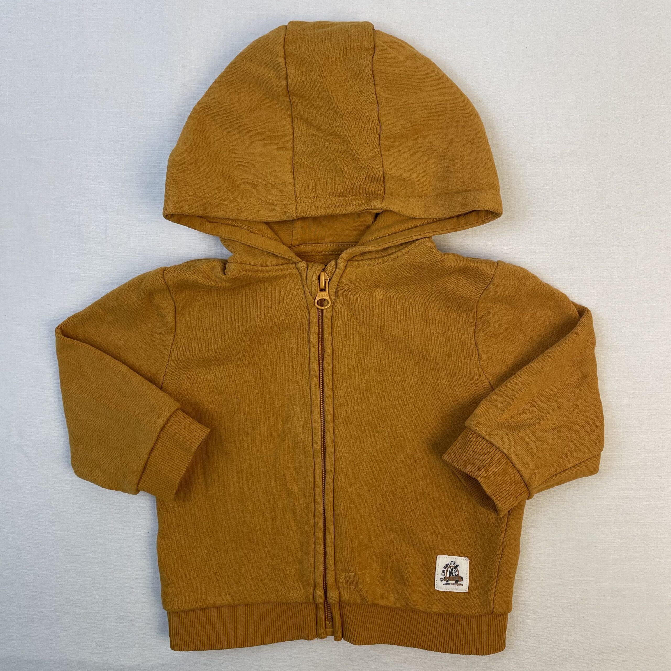 • Gilet sweat zippé à capuche, jaune ocre.