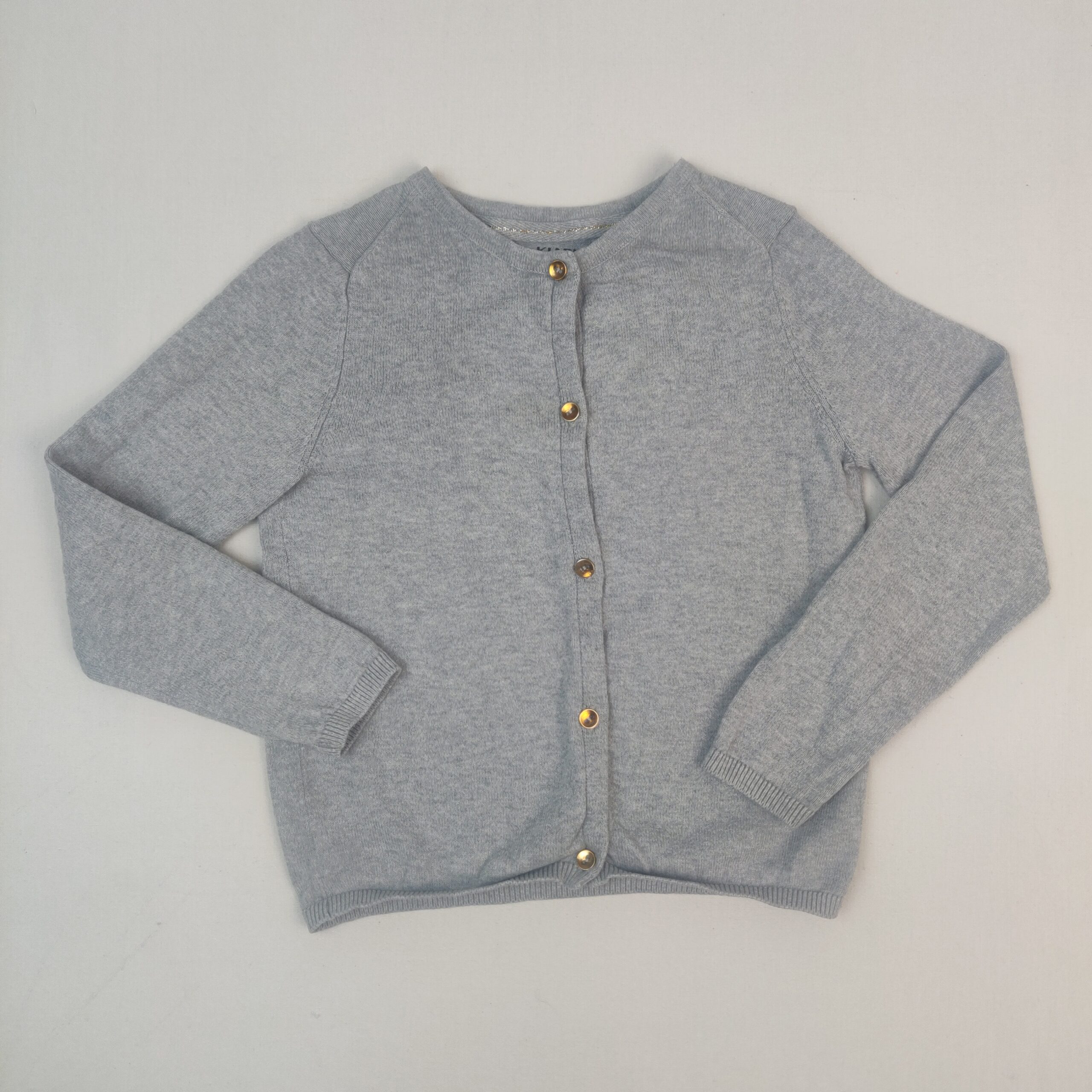 Autres commentaires : Gilet fin en maille grise à manches longues, fermeture par petits boutons devant, gamme éco concpetion, fines boucloches au toucher.