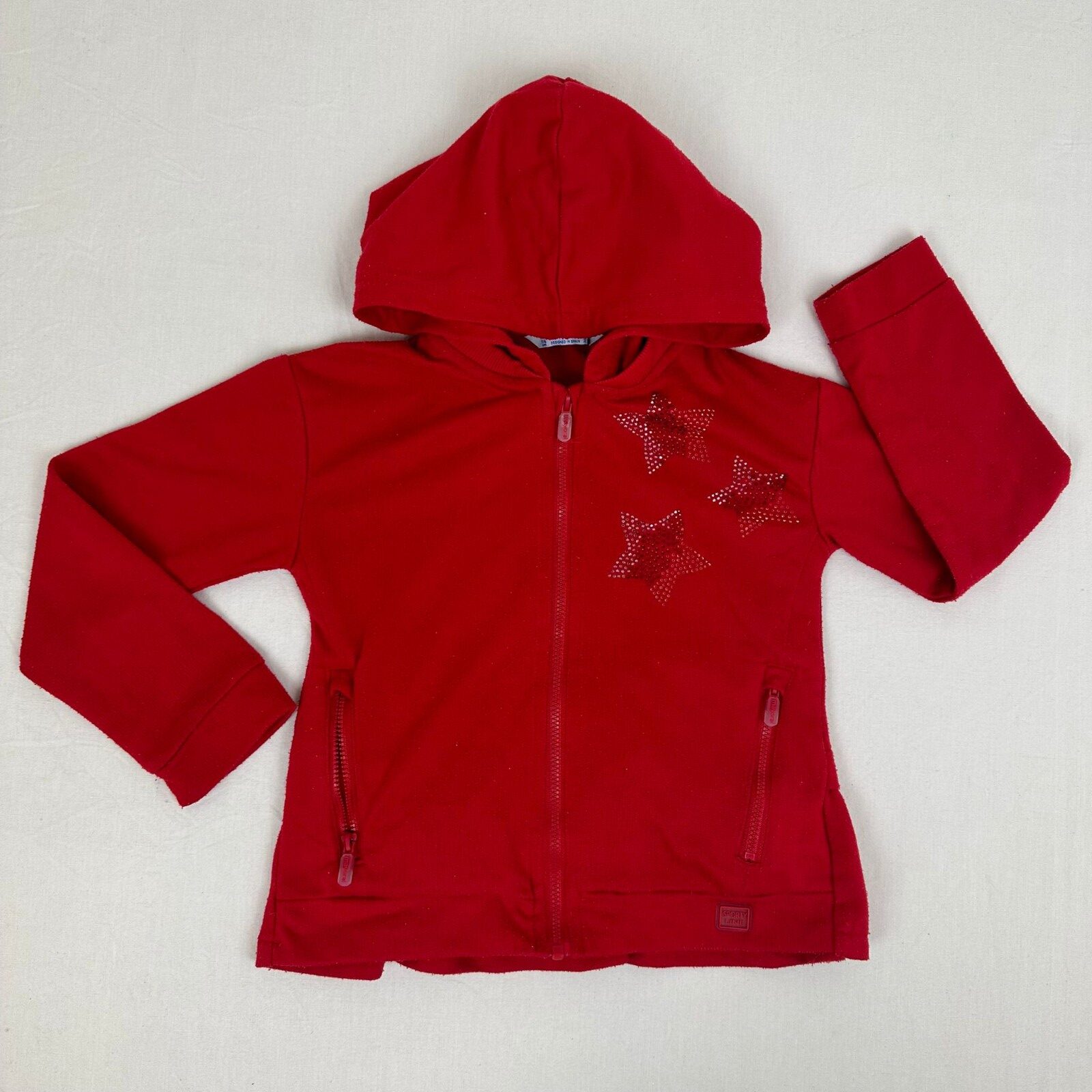 Autres commentaires : 13% coton et 2% elasthanne. Gilet manches longues avec capuche et une fermeture en zip. Contient quelques bouloches d’usages.