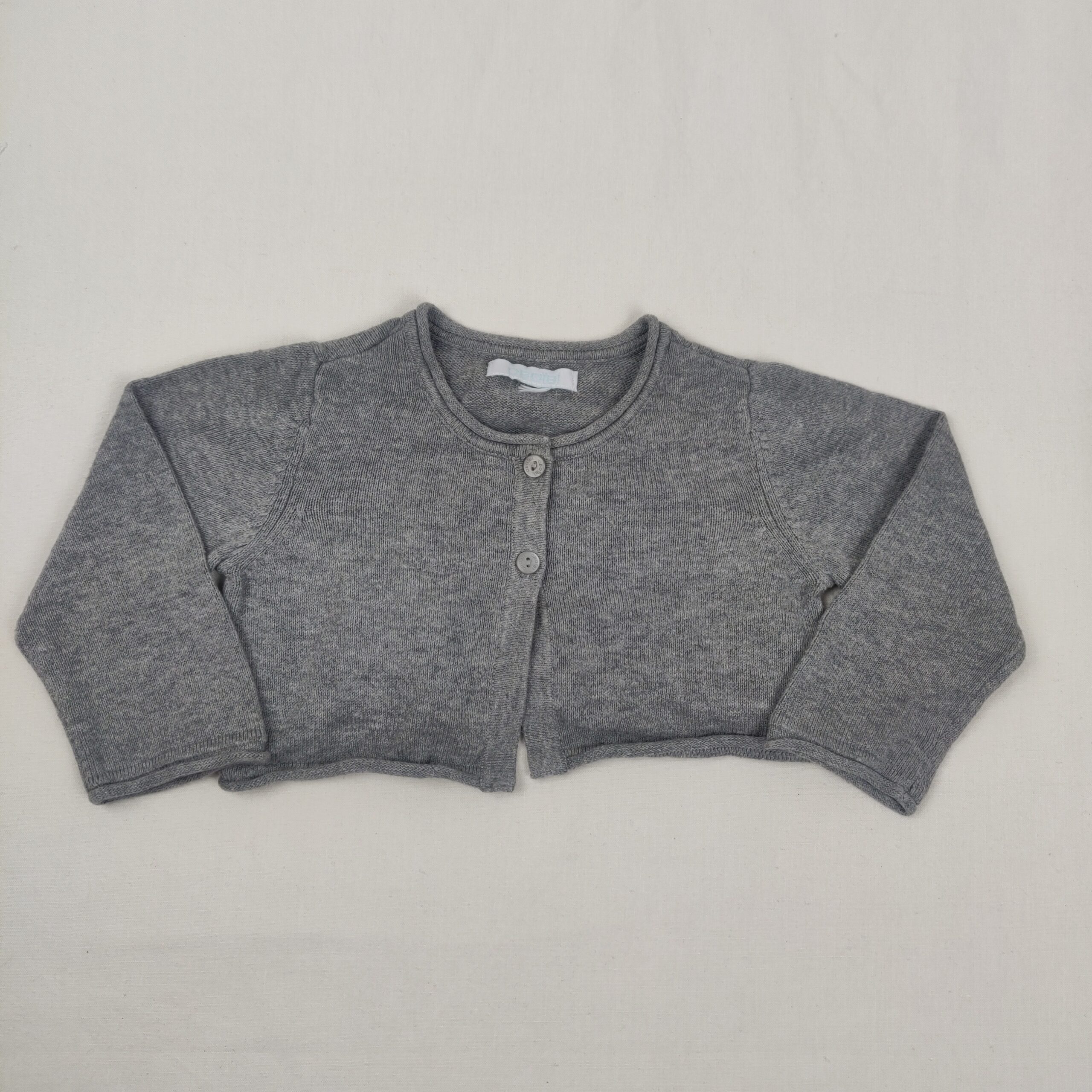 Autres commentaires : cardigan gris, manches longues, 2 boutons devant