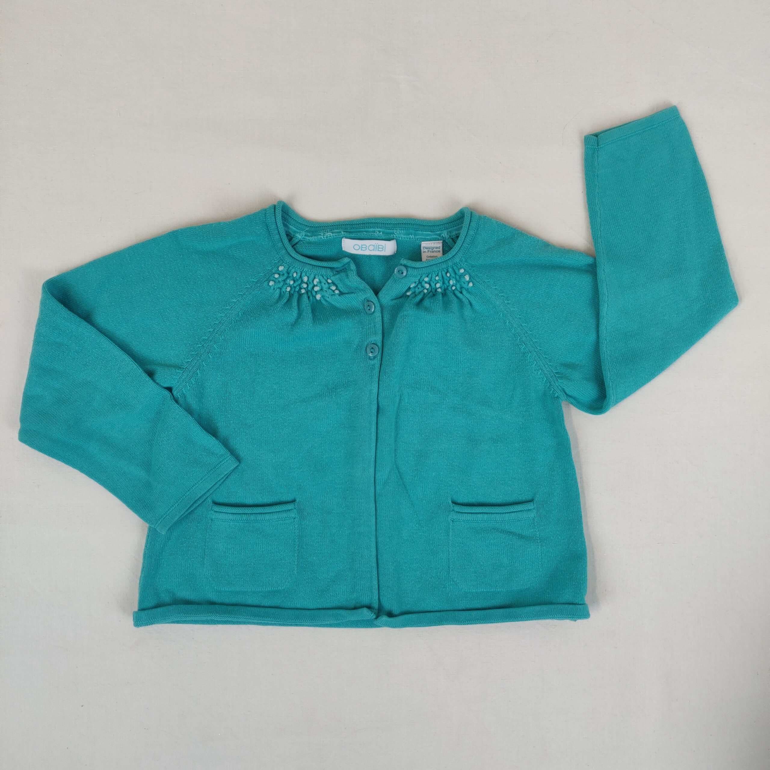 Autres commentaires : Gilet cardigant bleu avec deux petites poches en bas du gilet . Fermeture à bouton au niveau du cou .