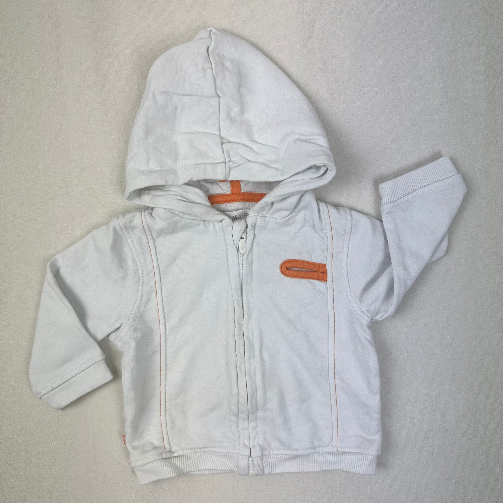 Autres commentaires : Gilet blanc manches longues avec capuche et une fermeture en zip.