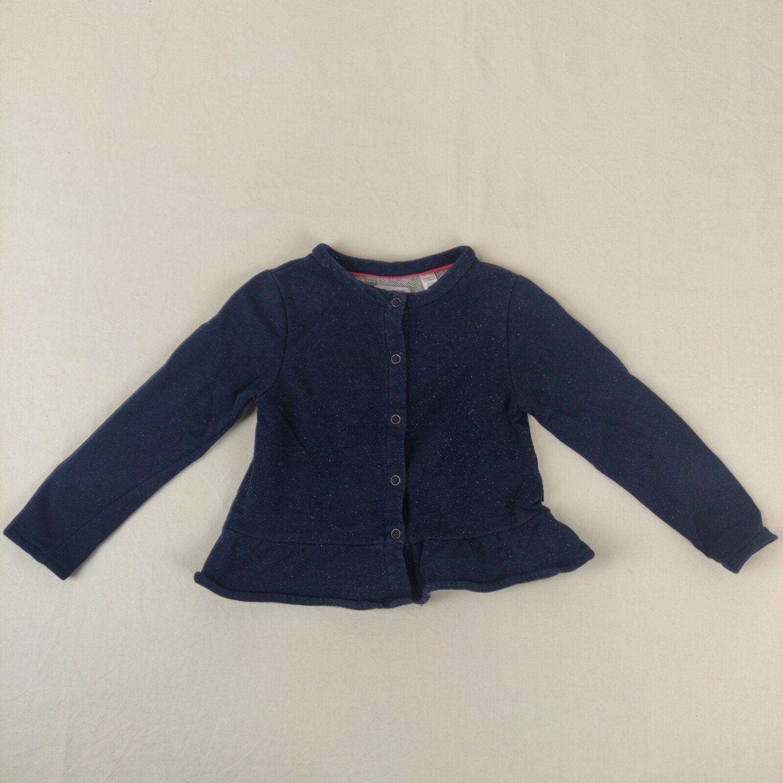 Autres commentaires : Gilet – bleu marine pailleté argenté. Ouverture centrale à pressions. Taille volantée. Usure normale.
