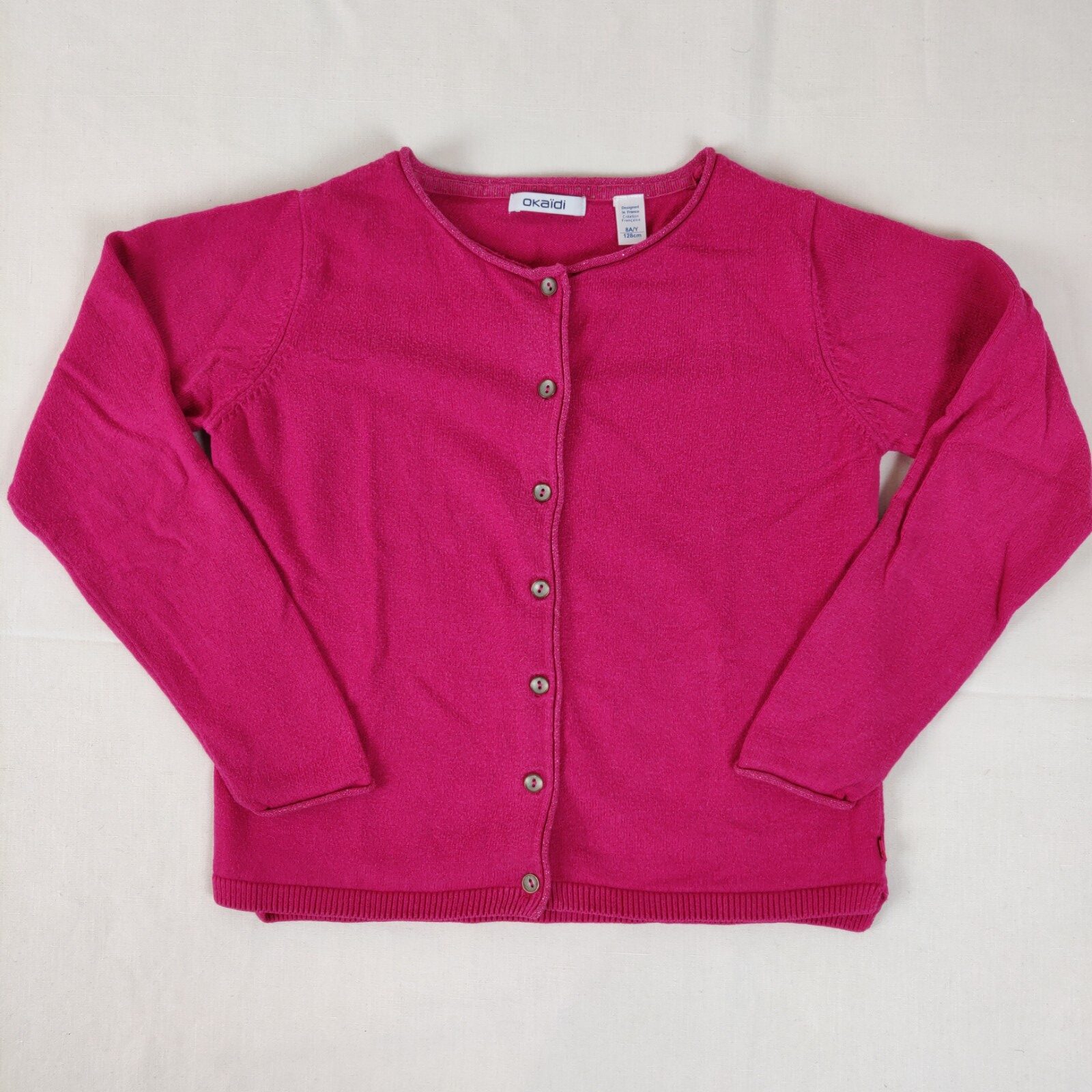 Autres commentaires : 40% polyamide. Gilet – rose fuschia avec liseré rose brillant au col et à l’ouverture. Ouvreture centrale à partir du col à boutons classiques. Très léger effet pelucheux.
