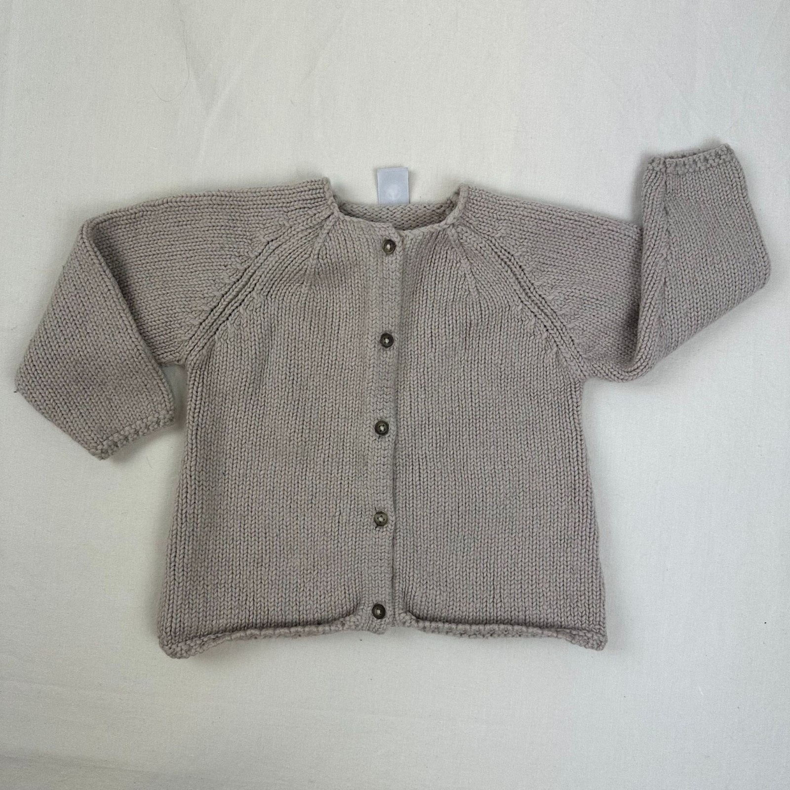 Autres commentaires : Gilet manches longues beige en maille avec une fermeture devant par boutons.