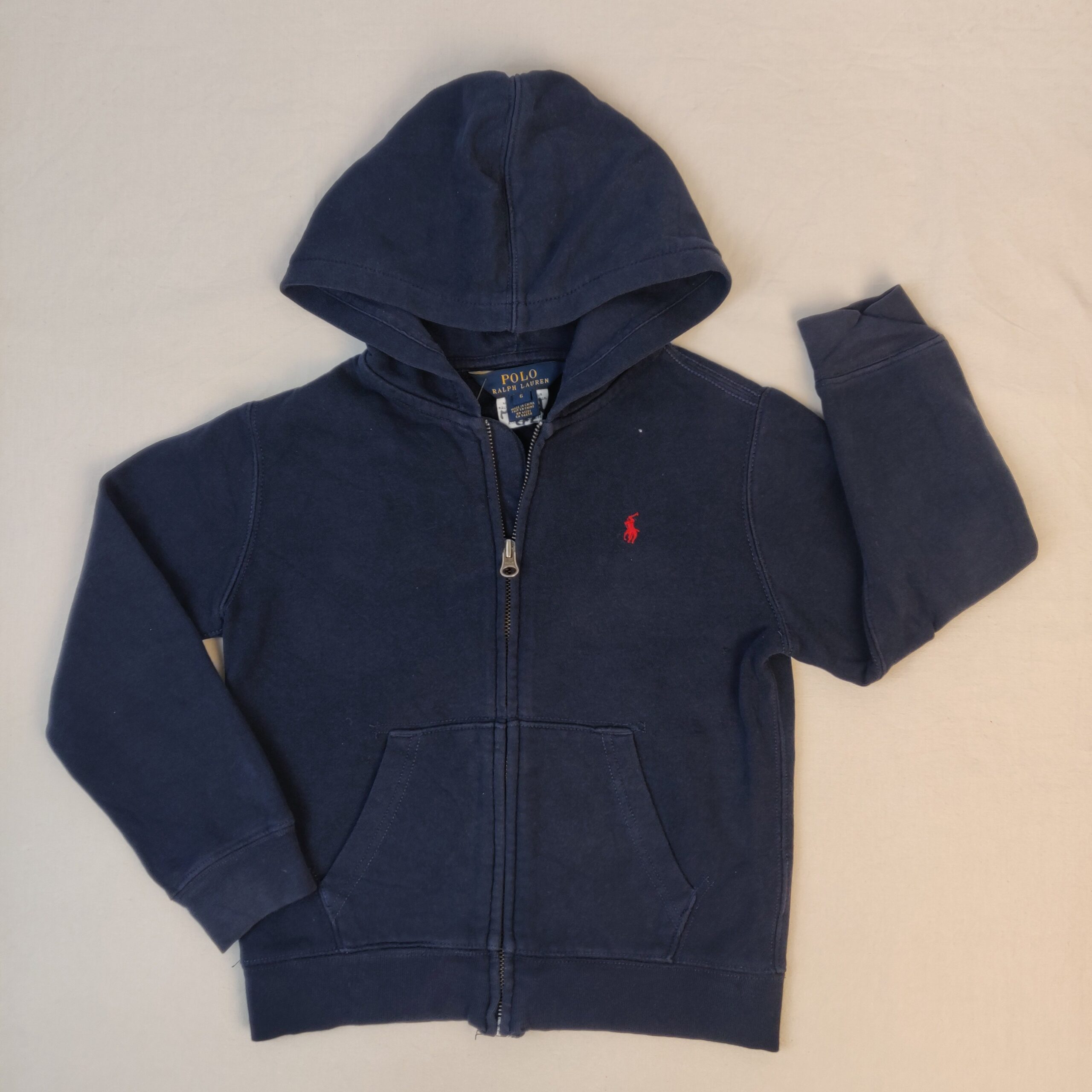 - Gilet à capuche bleu marine uni, petit défauts : un petit trou a été reprisé sous l’aisselle gauche. Niveau réduit de banane à kiwi.