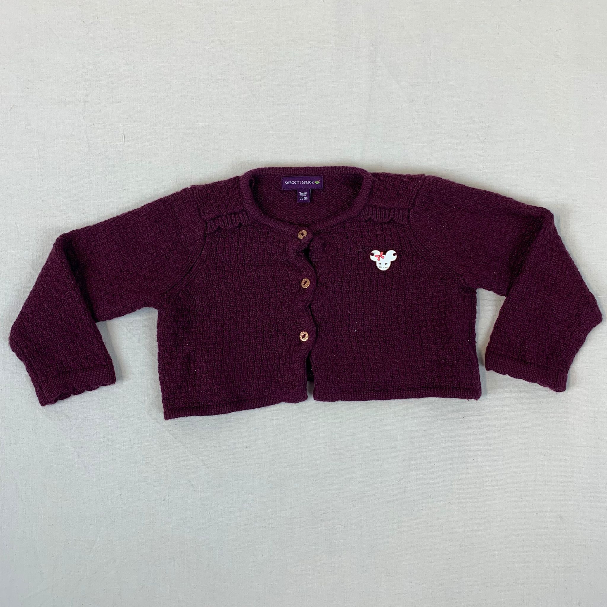 Autres commentaires : Gilet Cardigan violet manches longues avec 3 boutons.