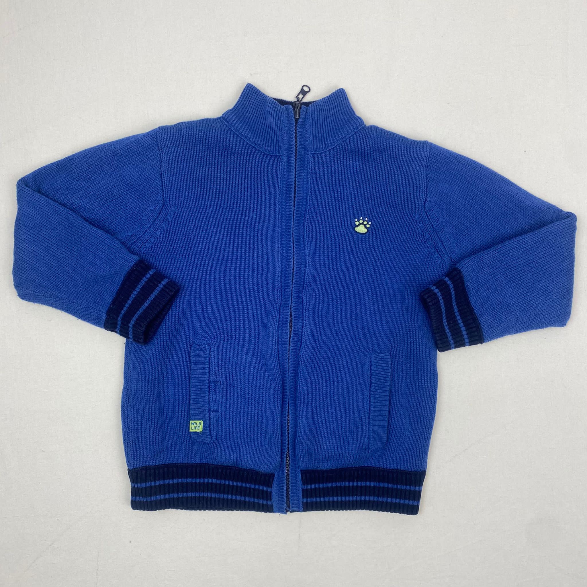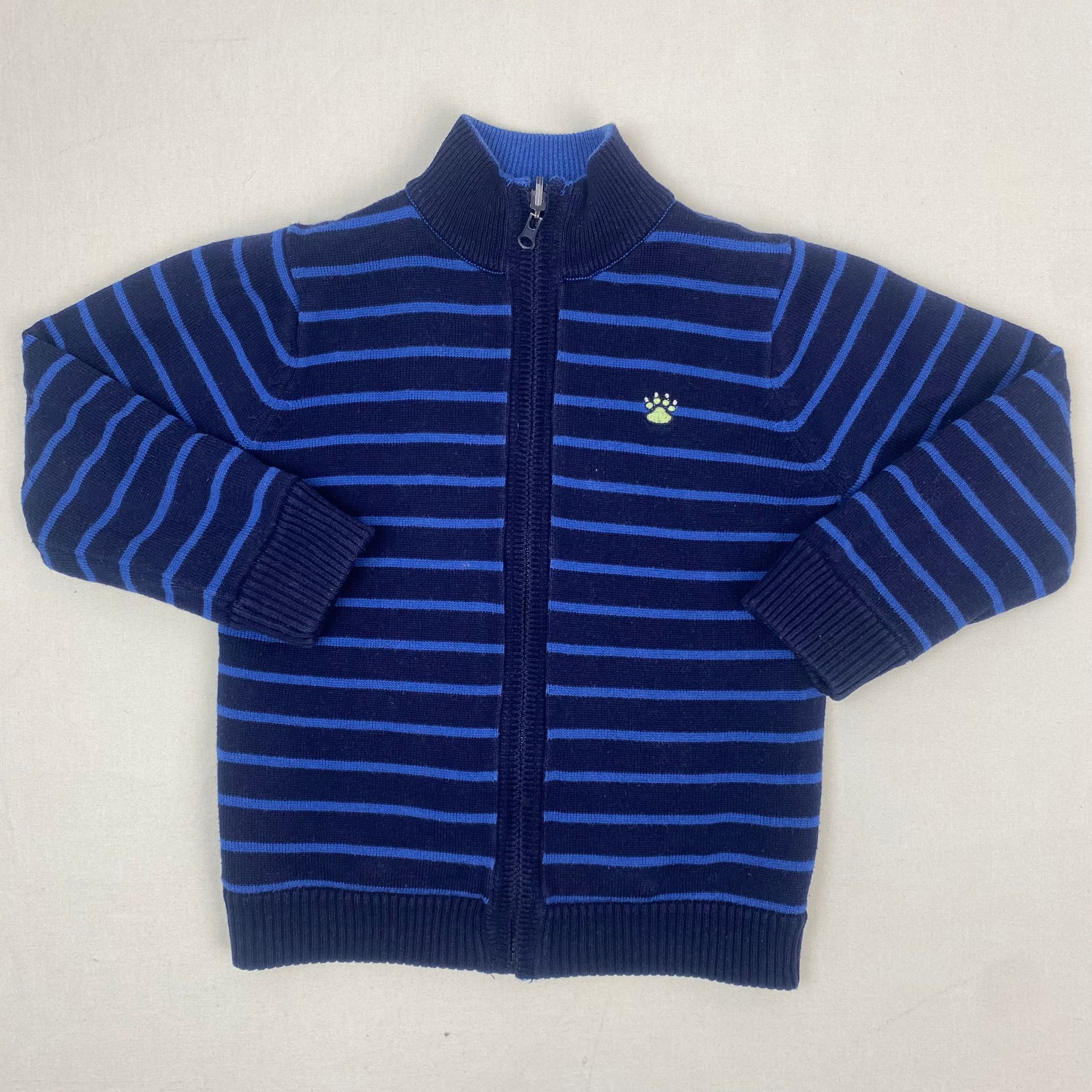 Autres commentaires : Gilet réversible bleu foncé uni d’un côté, noir et bleu foncé de l’autre, col cheminé, fermeture par zip