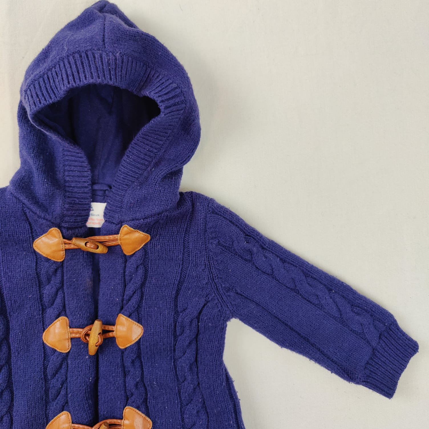 Autres commentaires : 46% polyamide, 6% laine, doublure coton 100%, Gilet en maille à Brandebourg bleu marine à capuche