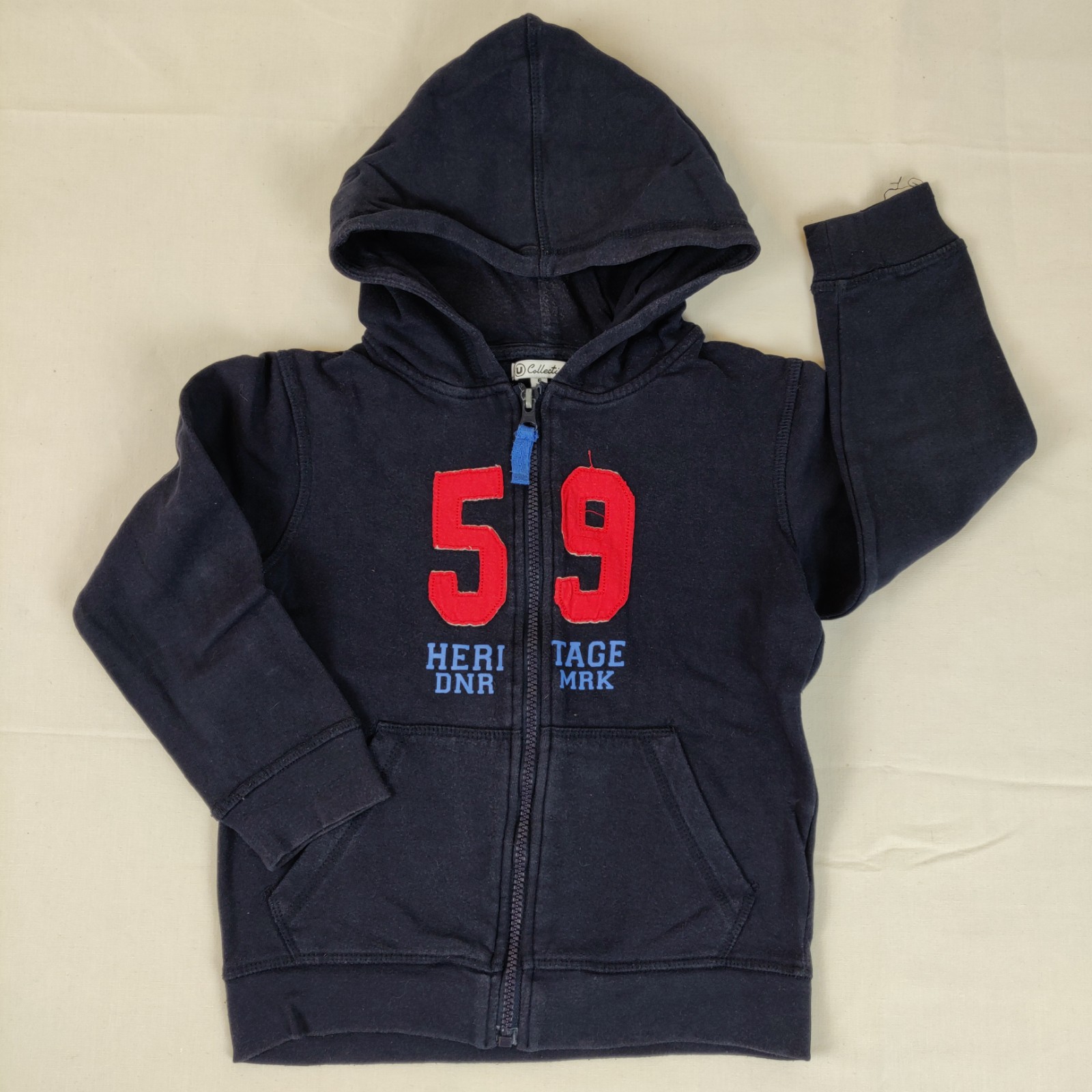 Autres commentaires : Gilet esprit sweat à capuche – bleu marine avec inscription rouge et bleu clair « 59 – Heritage ». Ouverture centrale à fermeture éclair. 2 poches latérales. Léger effet pelucheux