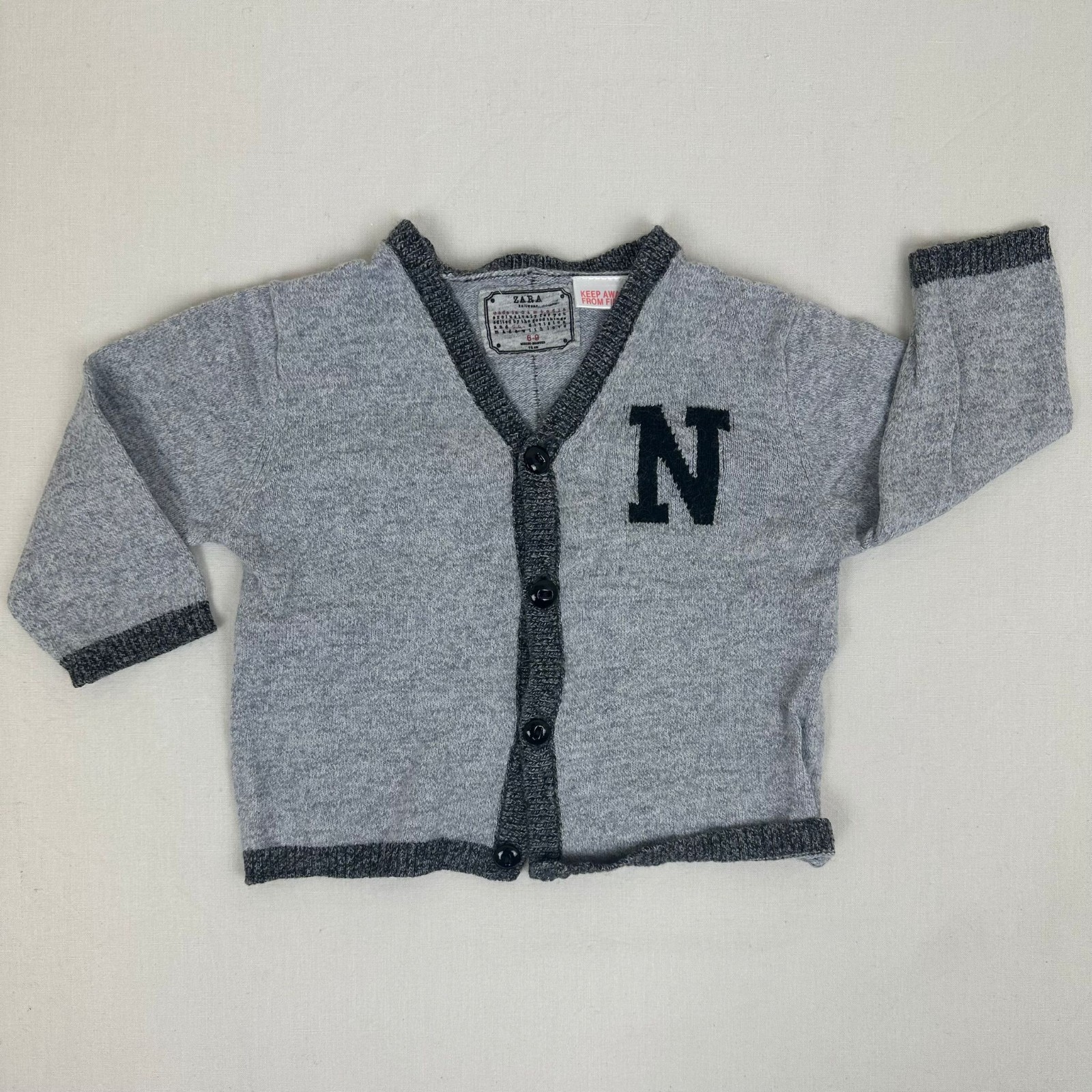 Autres commentaires : Gilet manches longues gris, col V et une fermeture par boutons.