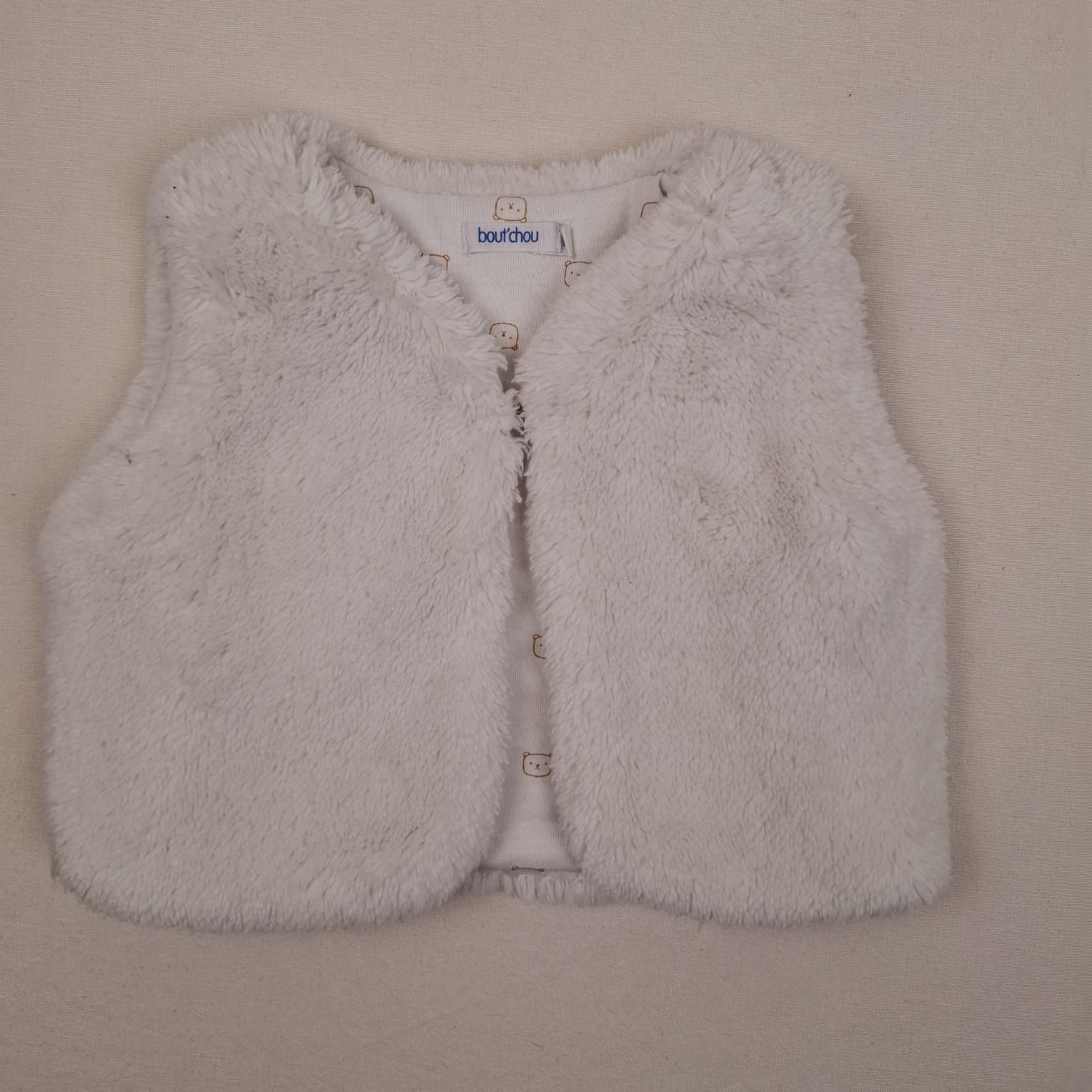 Autres commentaires : Pull sans manche blanc facon fourure Bout’chou 1M fermeture crochet à l’avant