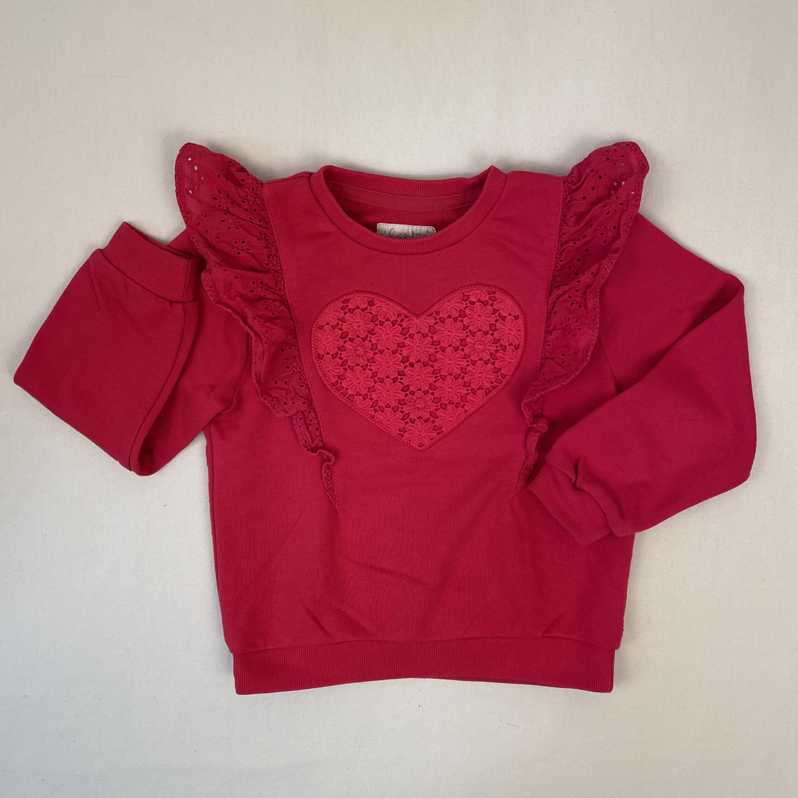 - Col rond, volants sur les épaules, décoration de broderie, motif coeur.