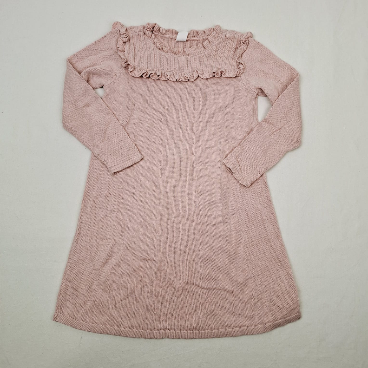 Autres commentaires : Robe pull rose, manches longues, col collerette.
