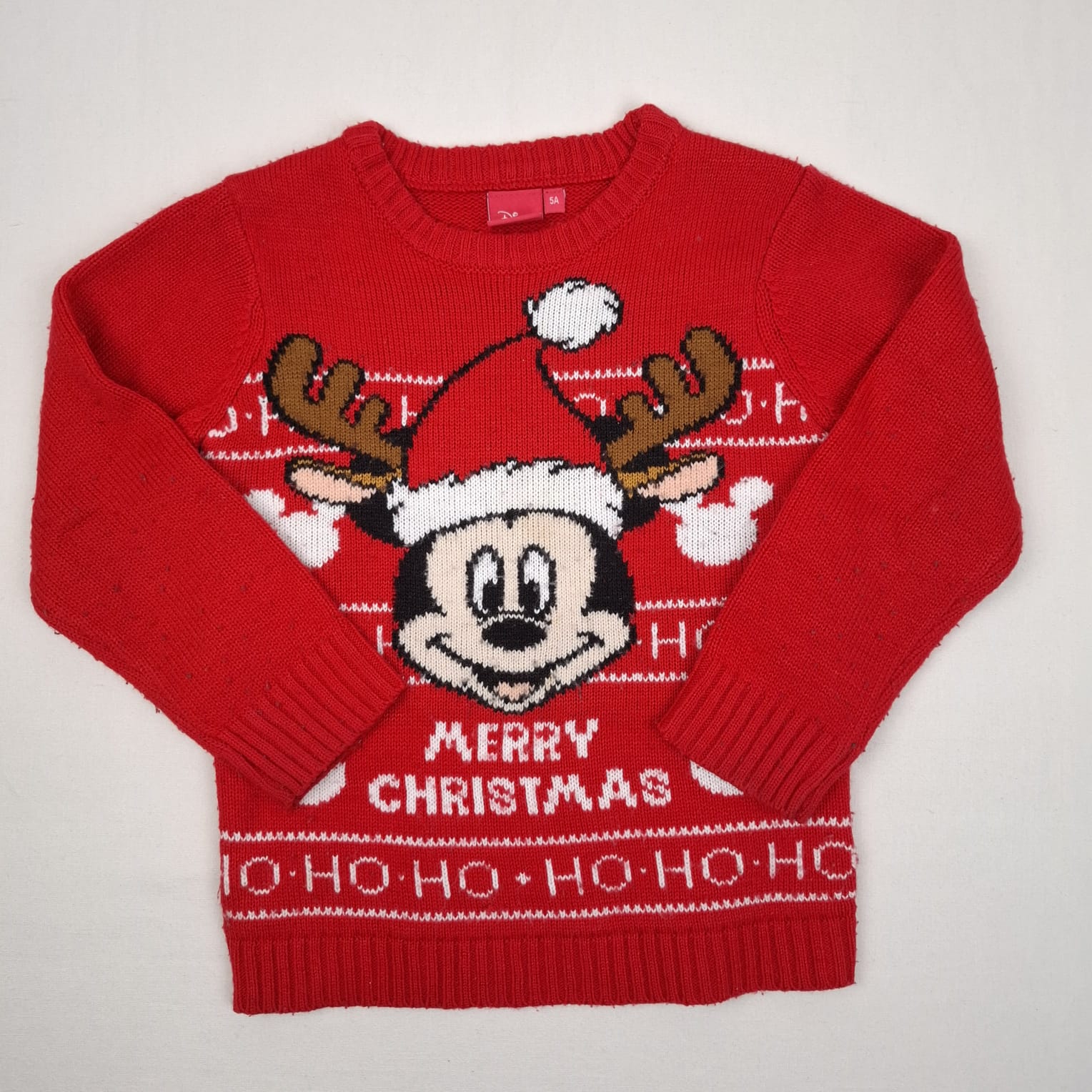 Autres commentaires : Pull en maille rouge avec motifs de Mickey et de Noël, col rond.