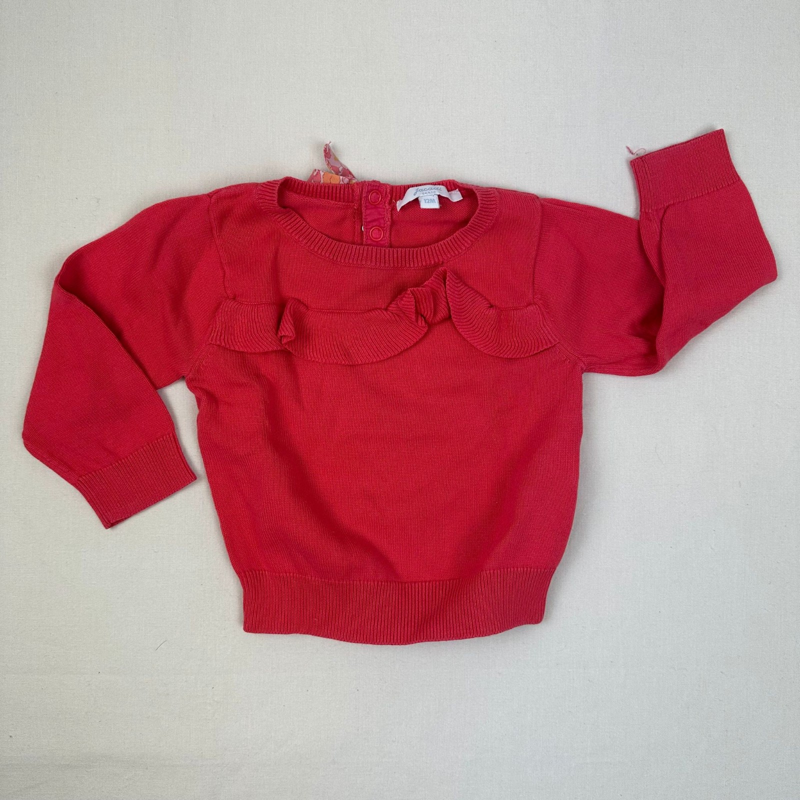 Autres commentaires : Pull rouge manches longues avec une fermeture au dos par 3 boutons pressions.