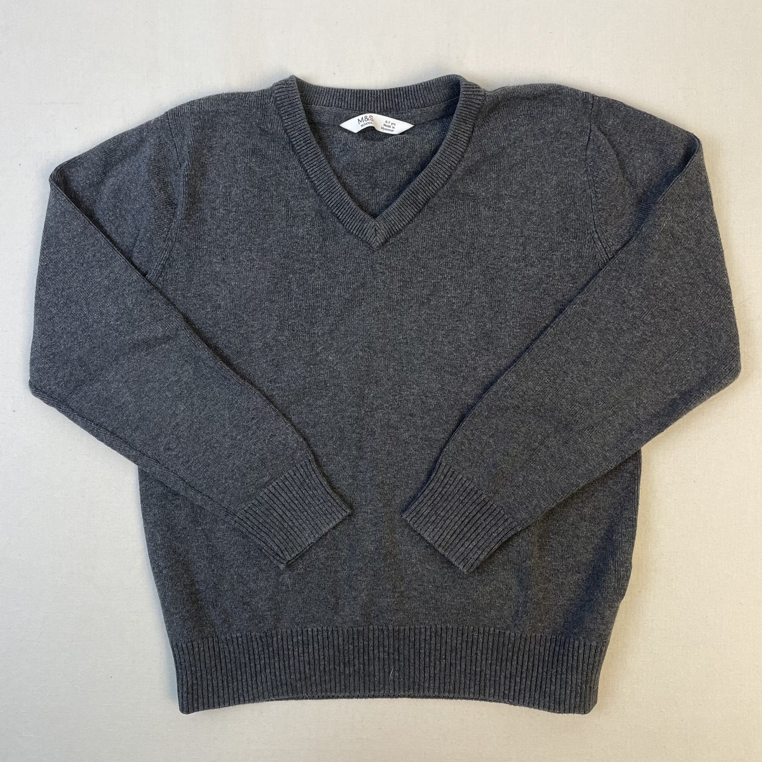 - Pull gris foncé, col V, gamme M&S School.