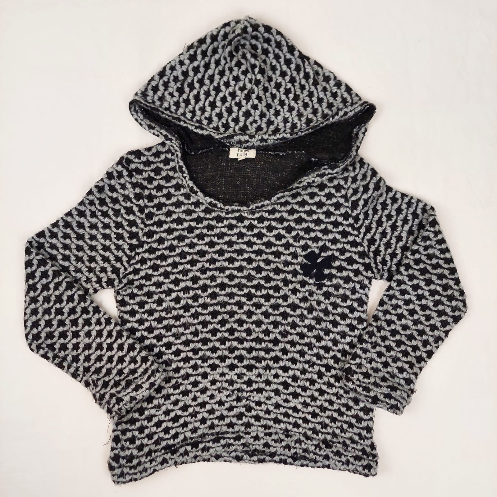 Autres commentaires : 20 acrylique, 10% coton, Pull àa capuche gris et noireen maille