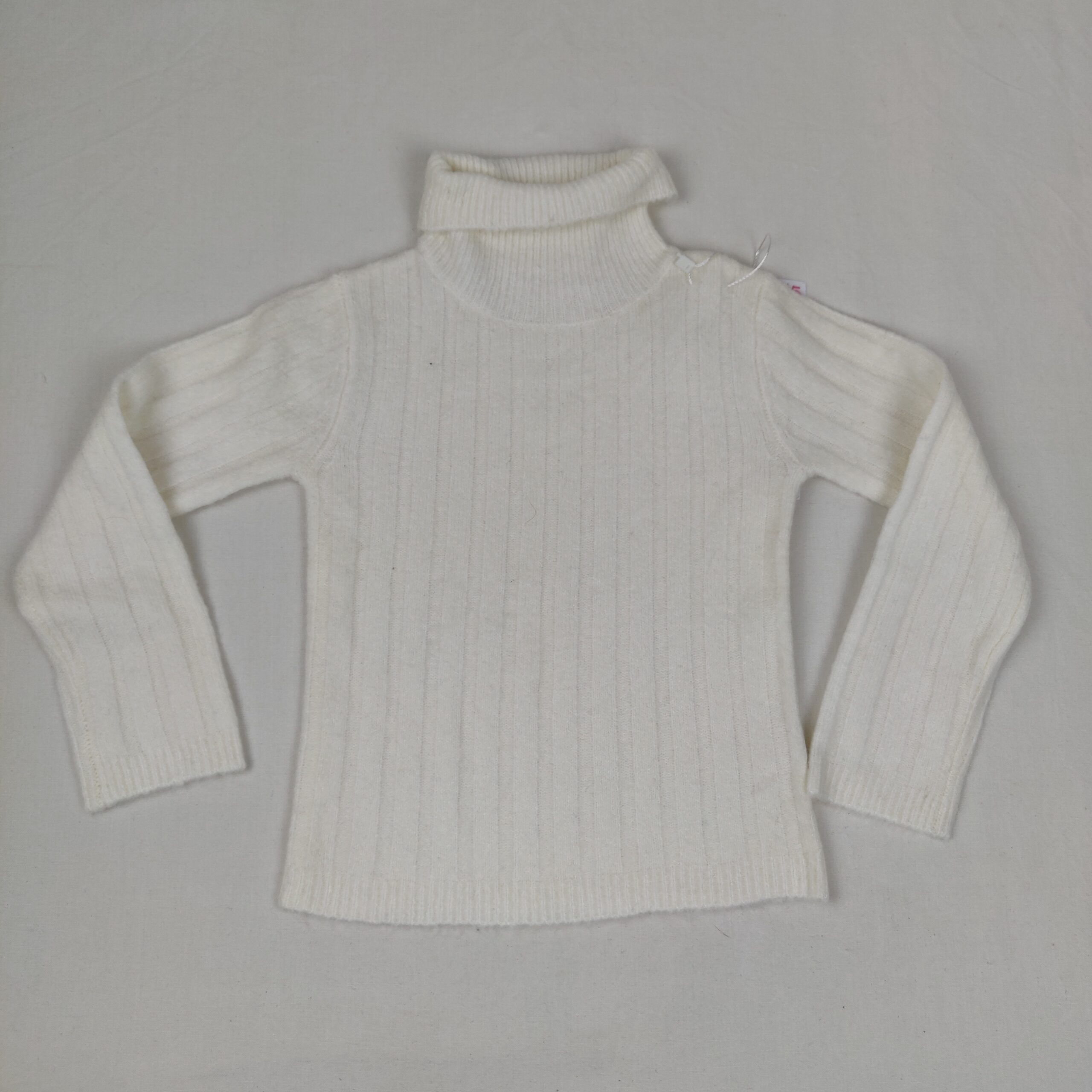 Autres commentaires : 14 % viscose, pull col roulé, blanc cassé, motif cotelé. Jamais porté