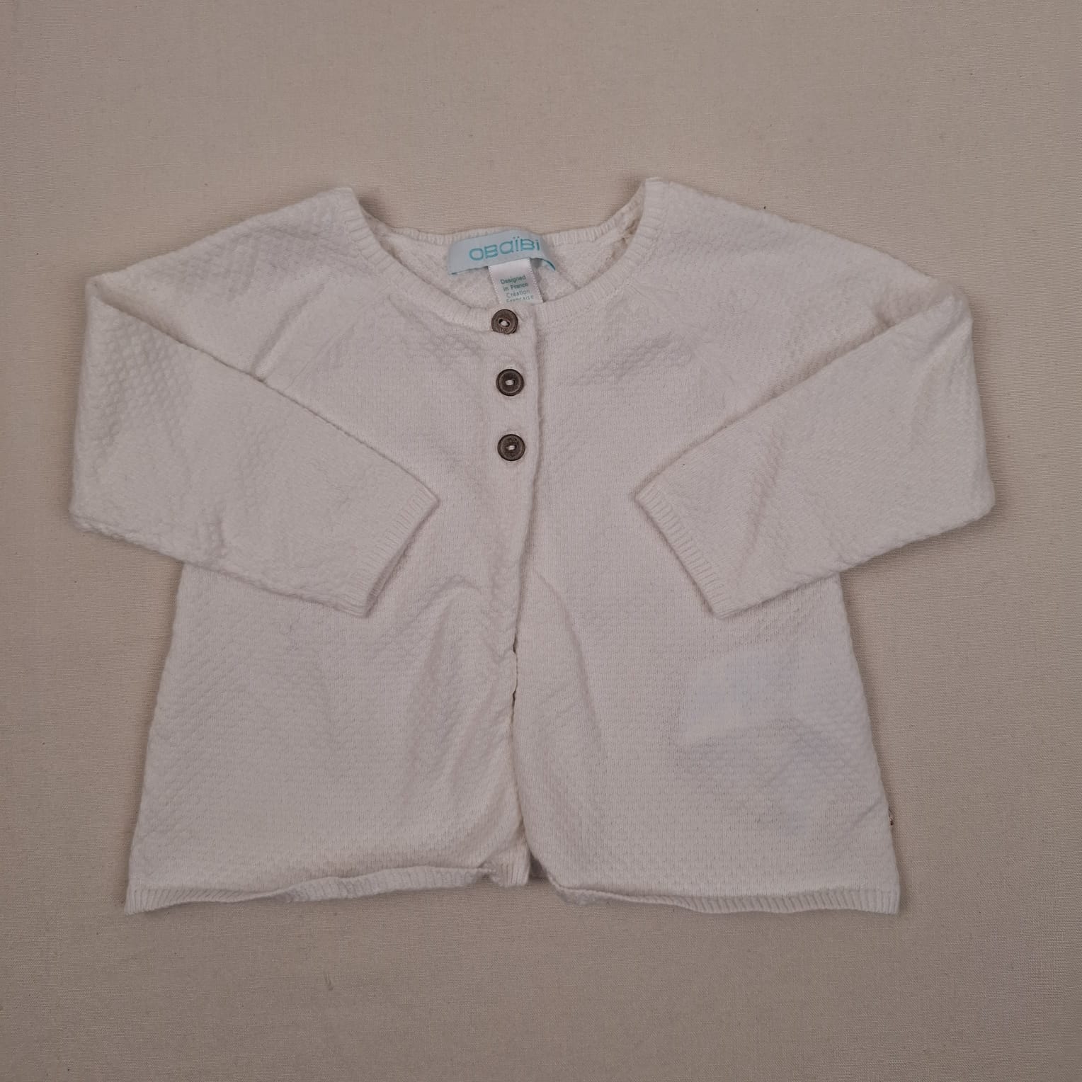 Autres commentaires : Pull Obaibi 3M blanc unie col rond avec 3 boutons de fermeture sur le haut du pull