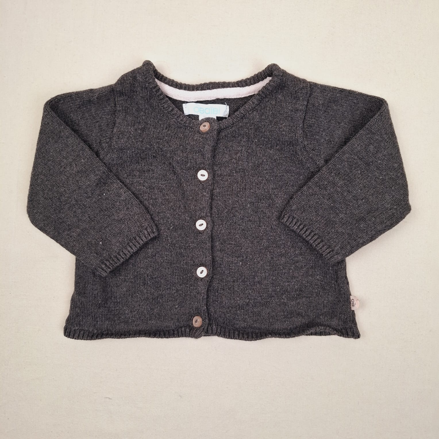 Autres commentaires : Pull Obaibi 3M gris foncé col rond avec boutons de fermeture rose, dessin brodé de chat rose à l’arrière