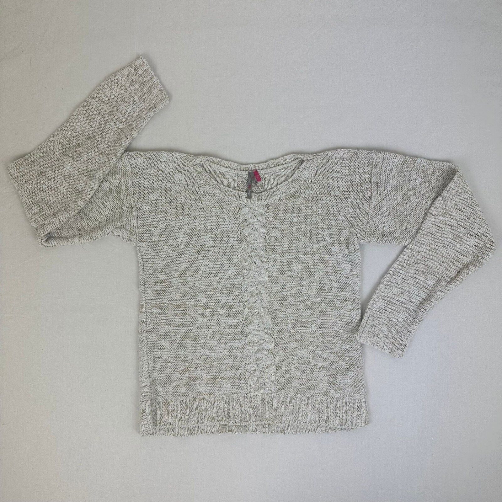 Autres commentaires : 4% métalisé. Pull en maille beige avec des fibres dorés.