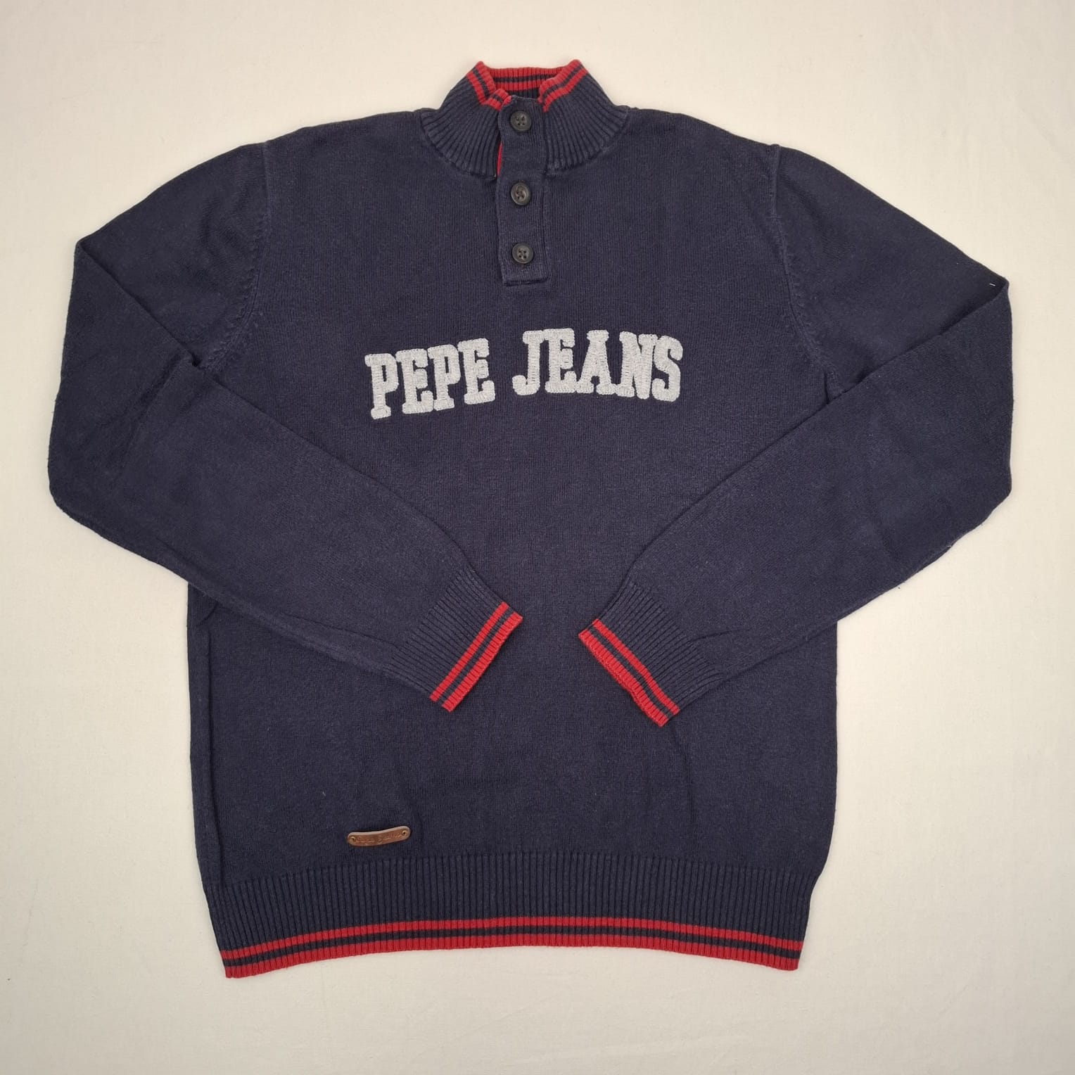 Autres commentaires : 5% cachemire, Pull bleu foncé à manches longues, col cheminé, fermeture par boutons