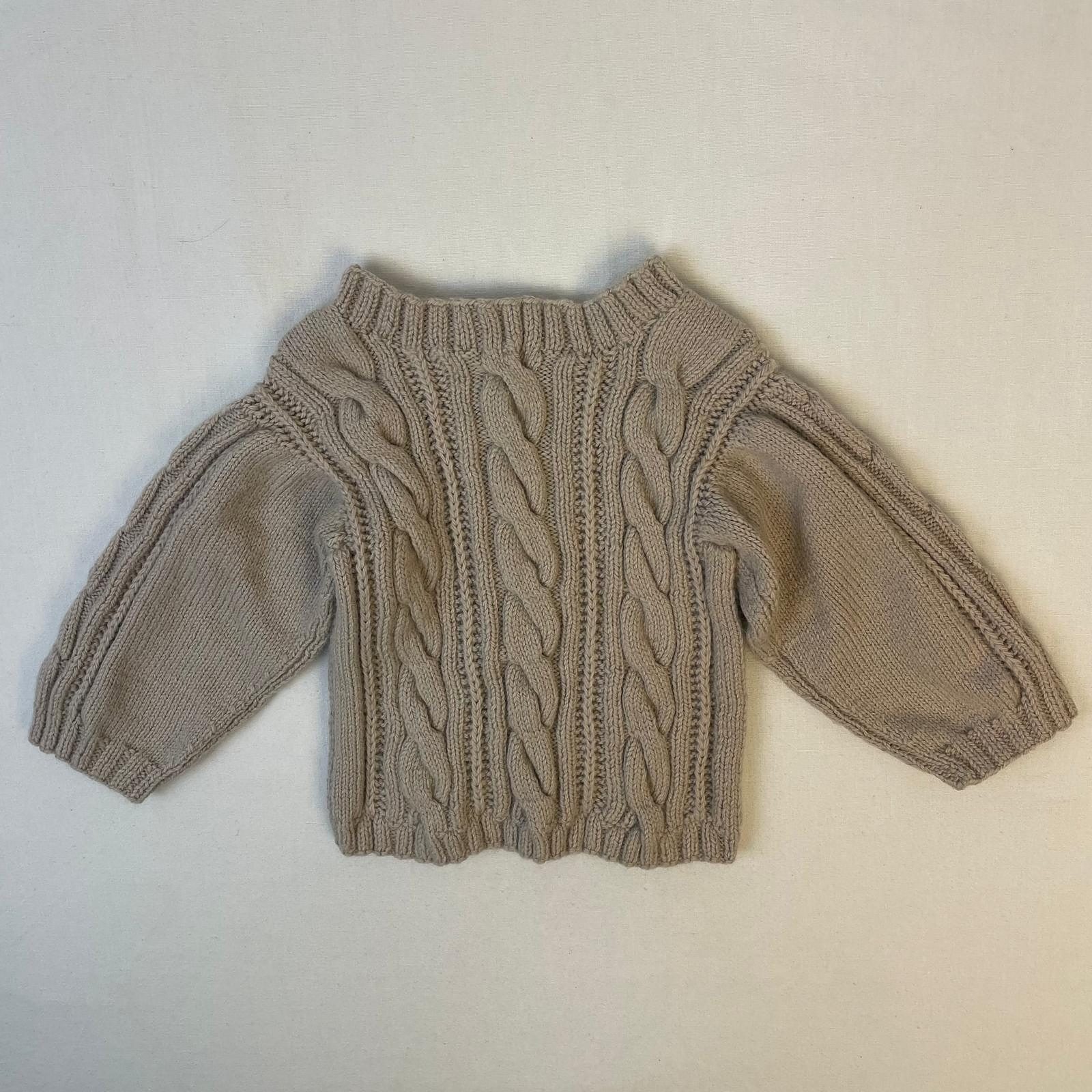- Pull en maille torsadée, certainement fait main, de couleur beige foncé. .