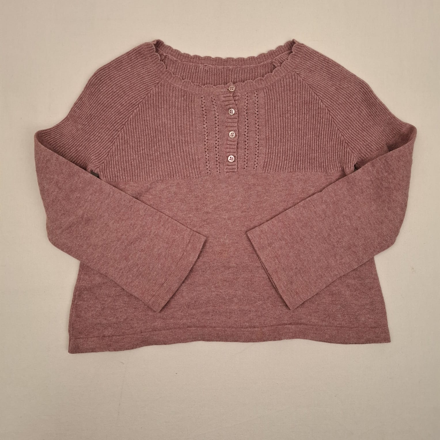 Autres commentaires : Pull manches longues, col rond avec boutonnière. Taille estimée 8A
