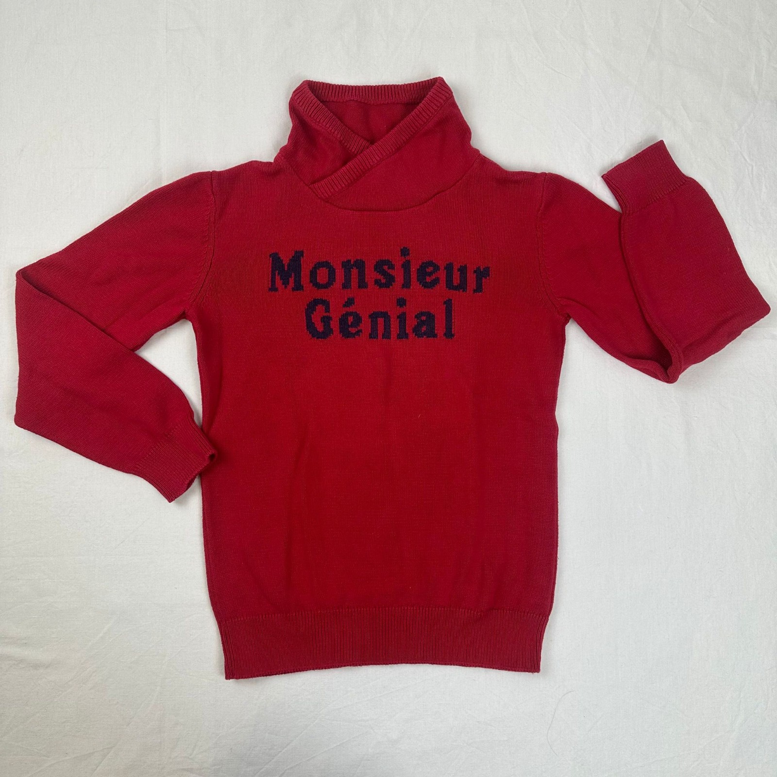 Autres commentaires : Pull rougec col chéminé avec motif centrale « motif general ».