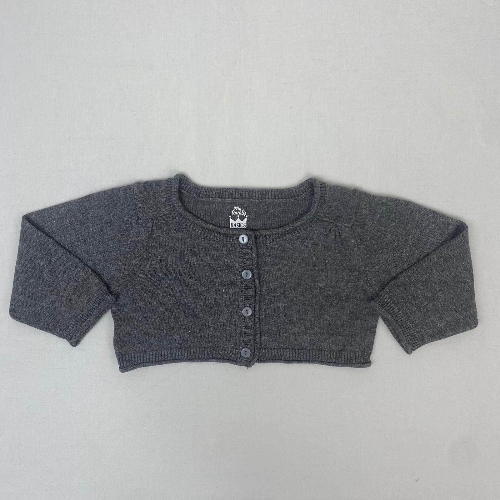 Autres commentaires : Gilet boléro TAO gris foncé uni, col rond, fermeture devant par boutons.