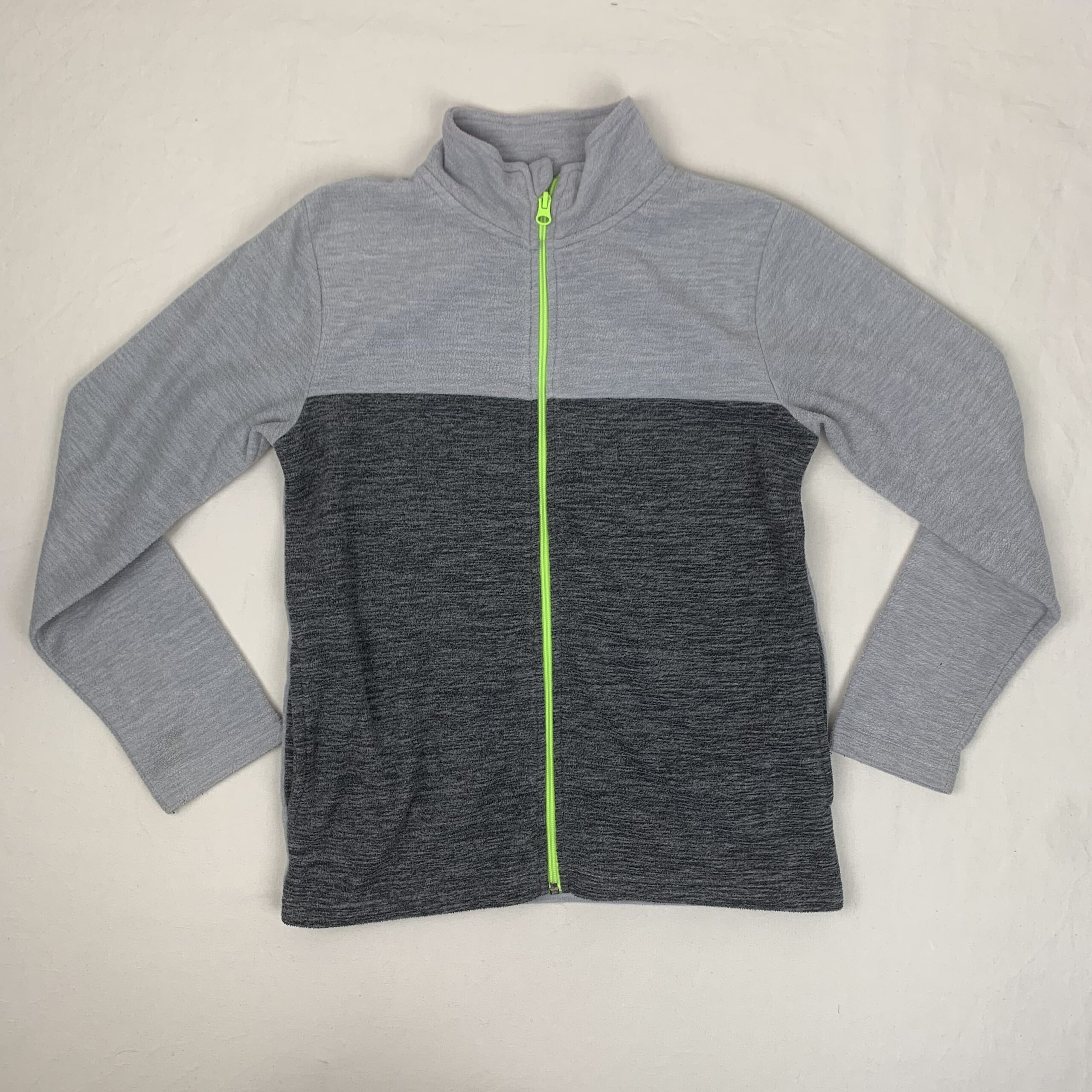 Autres commentaires : Pull polaire Tex 12A grise/foncé col haut avec fermeture éclaire vert claire