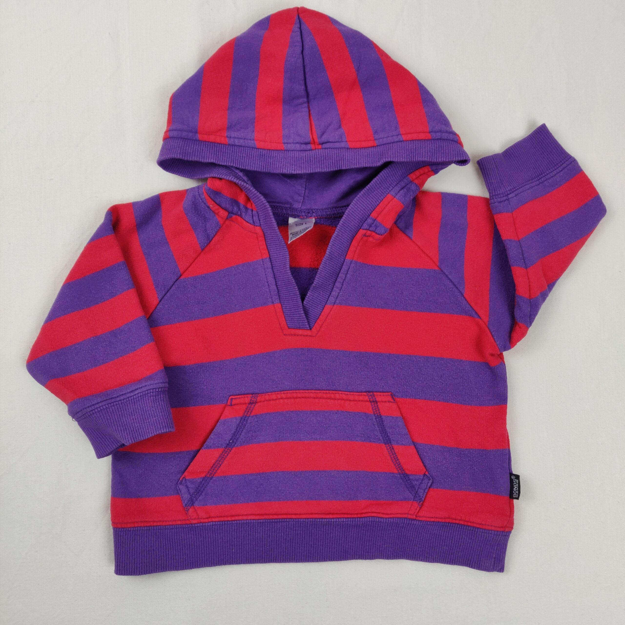 Autres commentaires : polyester, Sweat à capuche doublé en jersey de coton violet et rouge col marin et poche avant