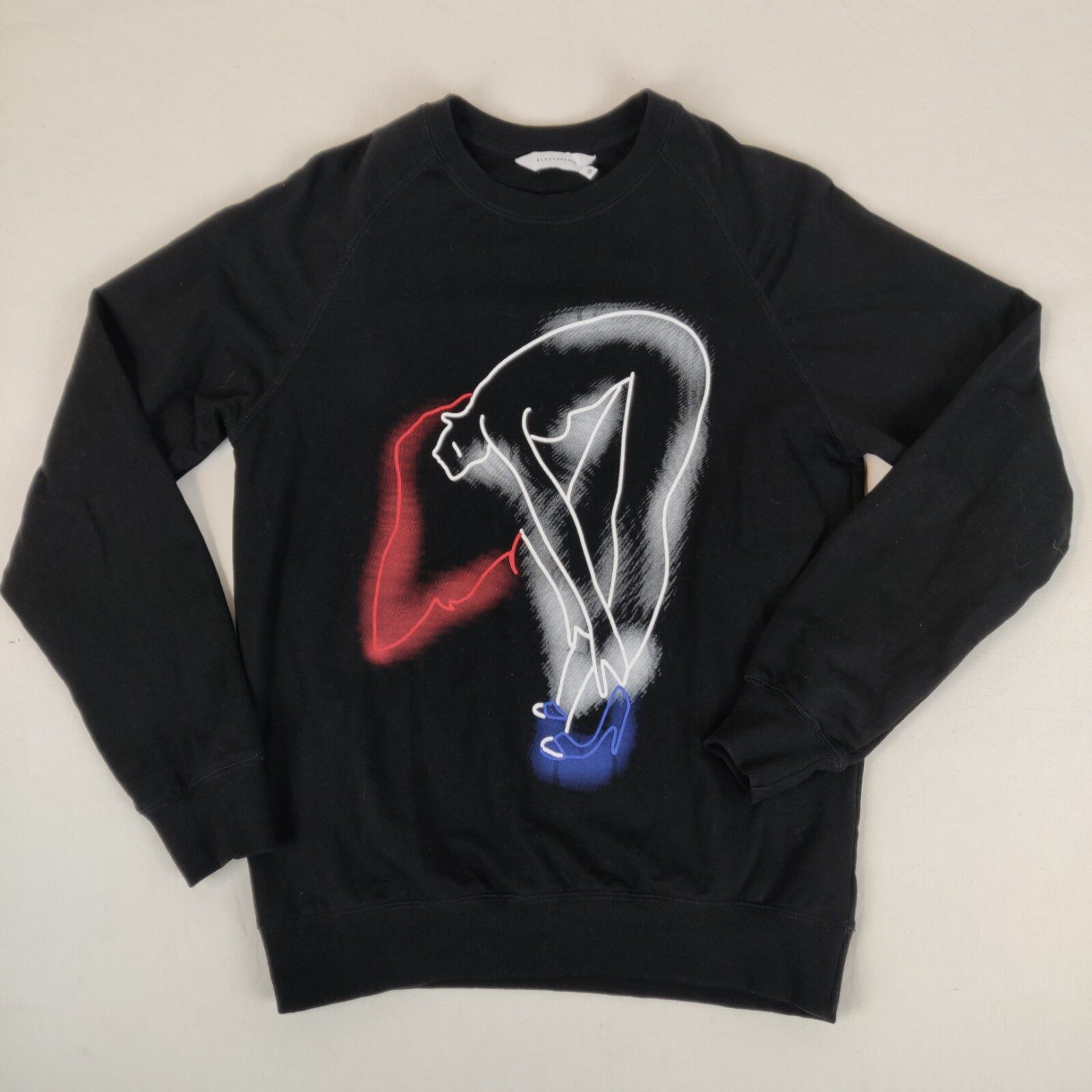 Autres commentaires : Sweat noir de chez Eleven Paris, contient 100% de coton et illustré par un dessin de femme .