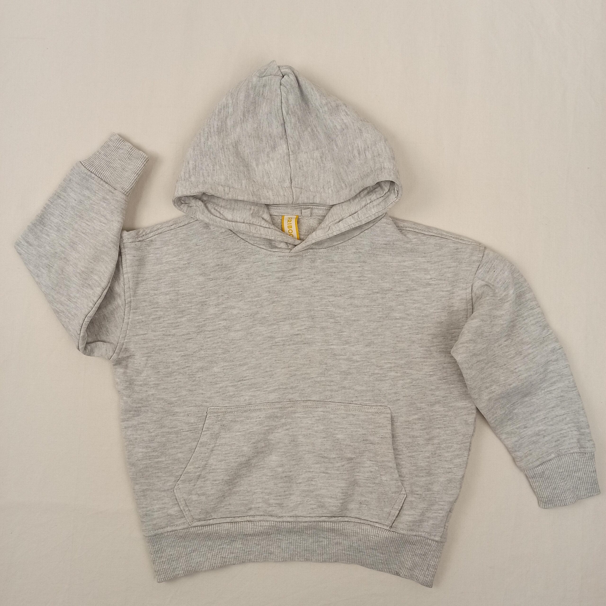 Autres commentaires : 2% viscose. Sweat à capuche gris grège clair, poche ventrale, contient 30% de coton recyclé.