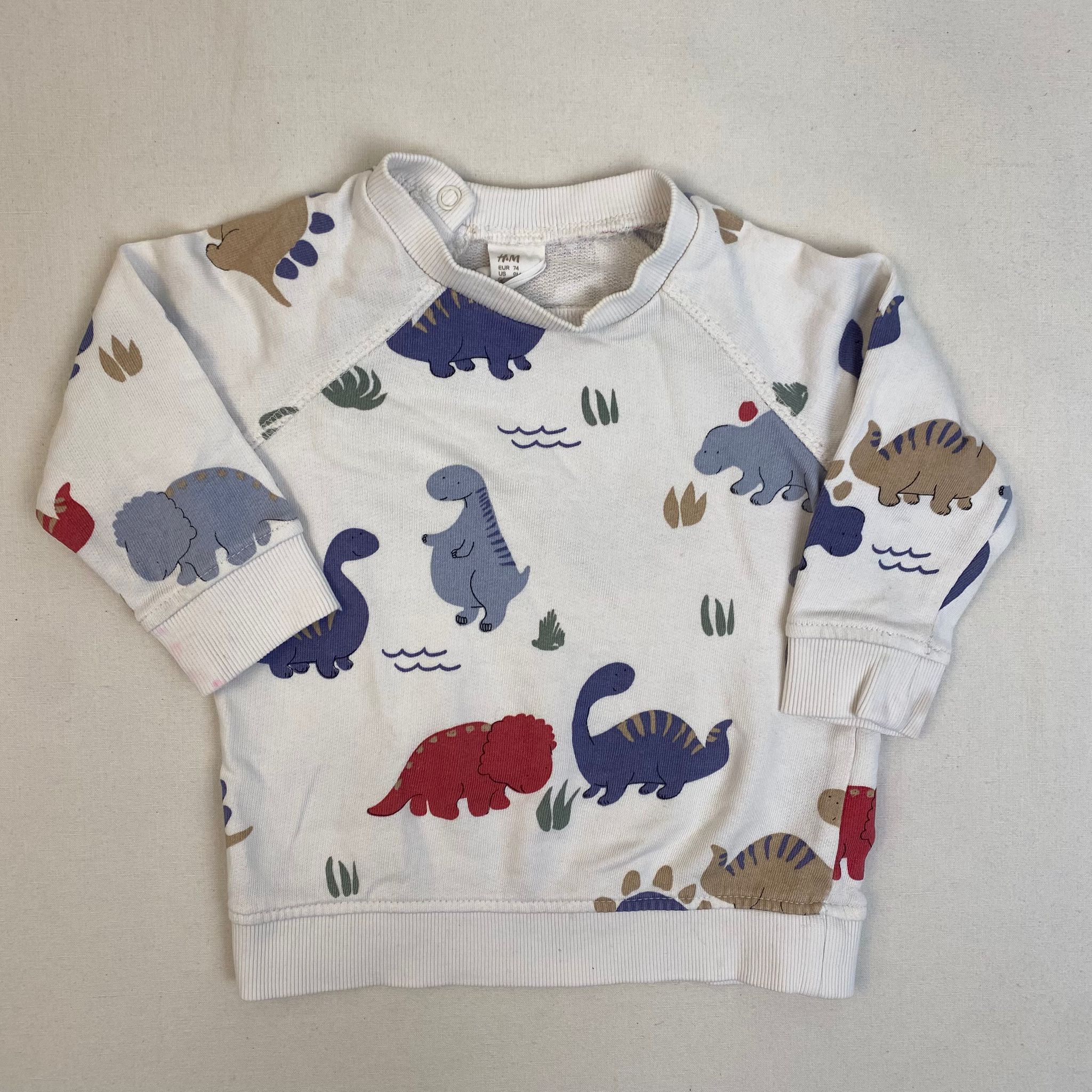 - Sweat léger à manches longues H&M blanc avec dessins de dinosaures, col rond.
