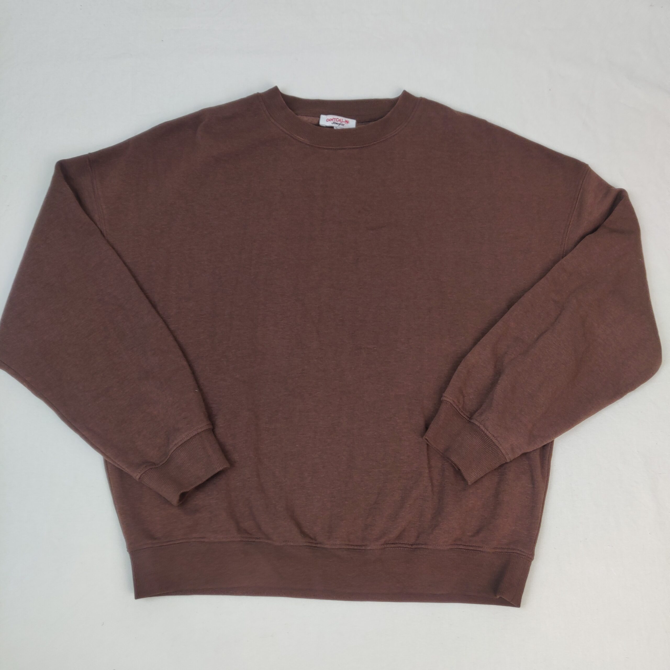 Autres commentaires : 30% coton – Sweat manches longues marron molletonné à l’intérieur, style un peu oversize, col rond. Taille 36.