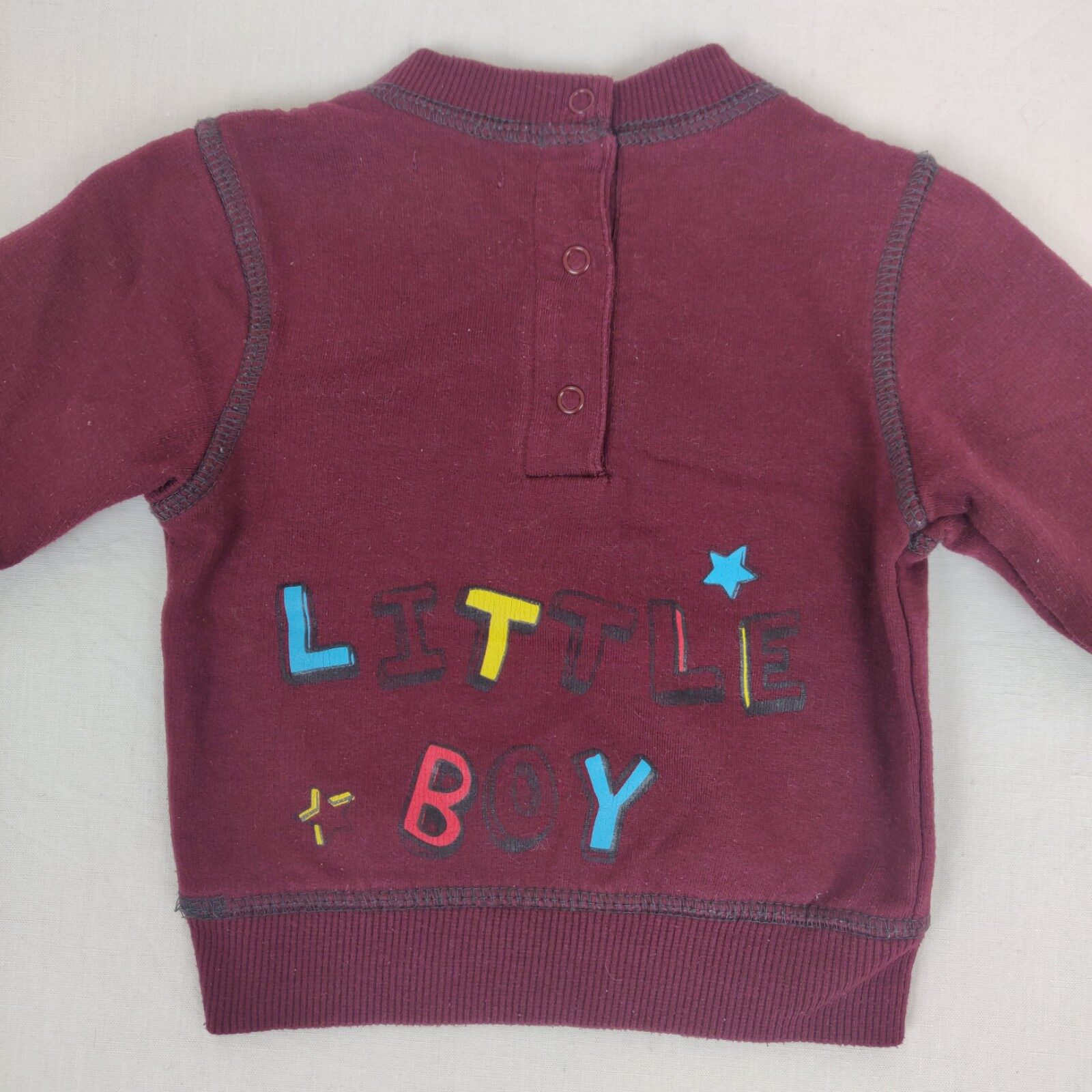Autres commentaires : Sweat sans capuche violet avec une fermeture au dos par boutons pressions et motif « little boy ».