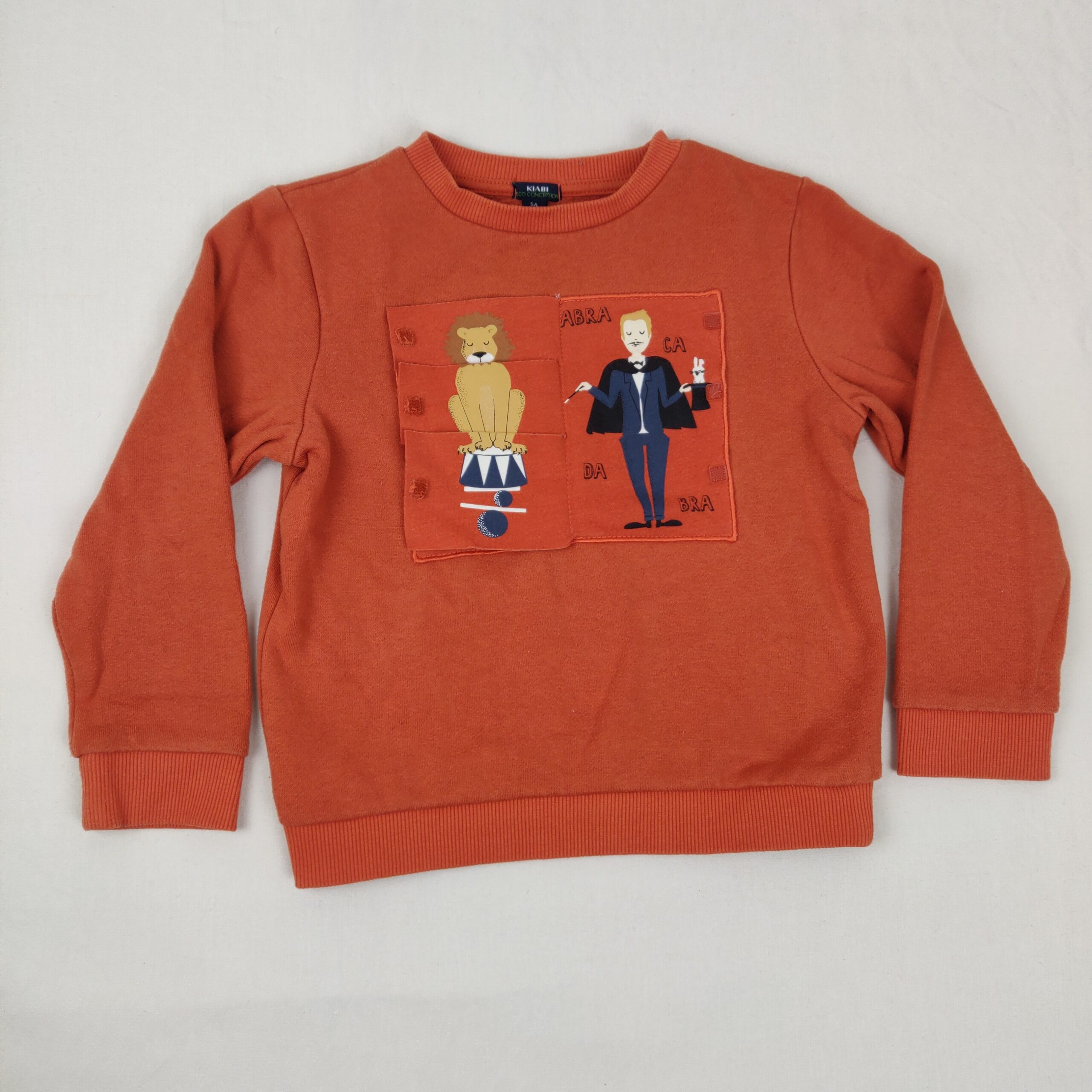 Autres commentaires : 40% polyester, Sweat imprimé ours, lion, magicien et clown au choix à l’aide du tissu qui ce tourne