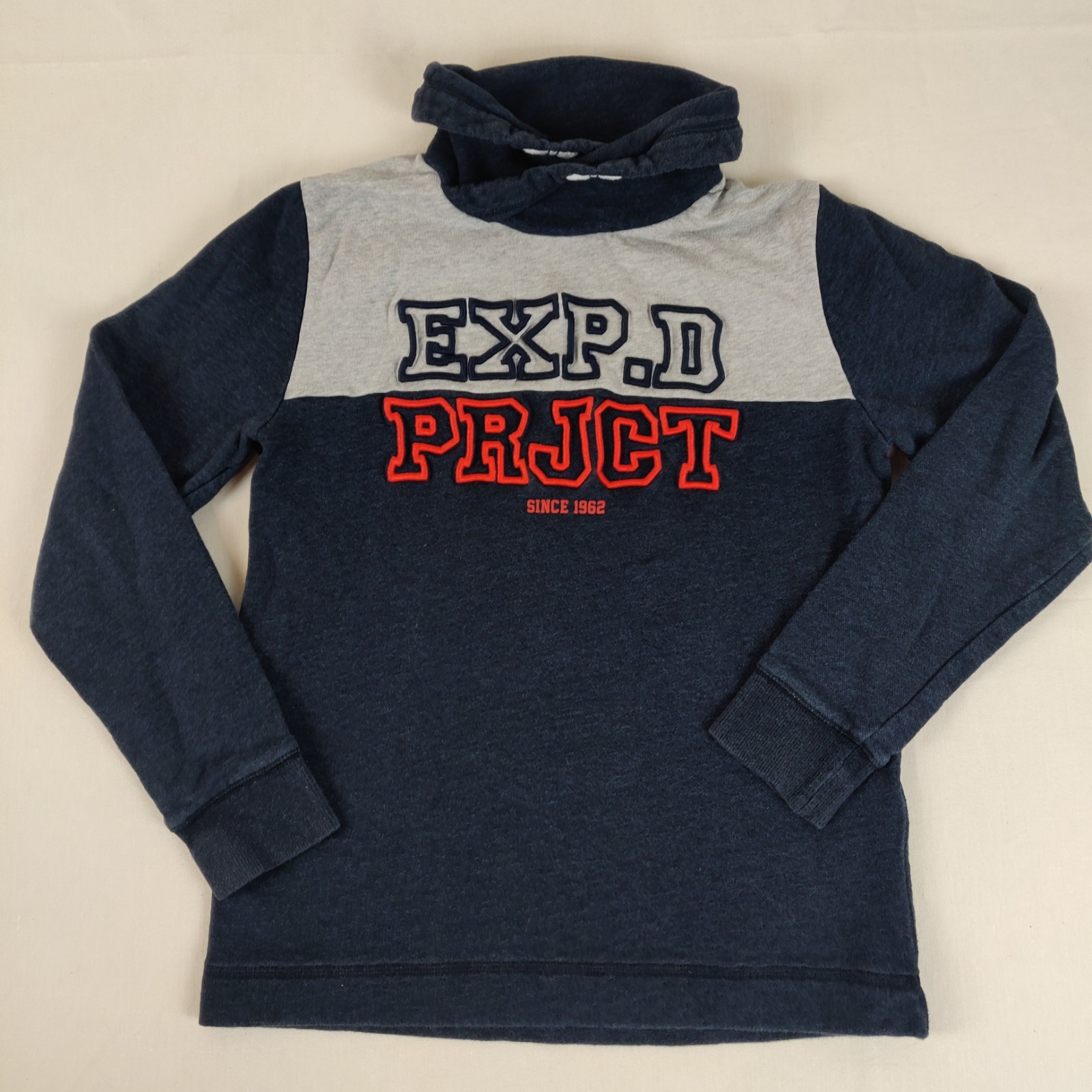 Autres commentaires : Sweat à col montant – bicolore bleu marine et gris chiné. Inscription centrale piquée bleu marine et rouge « Exp. D Prjct since 1962 ».