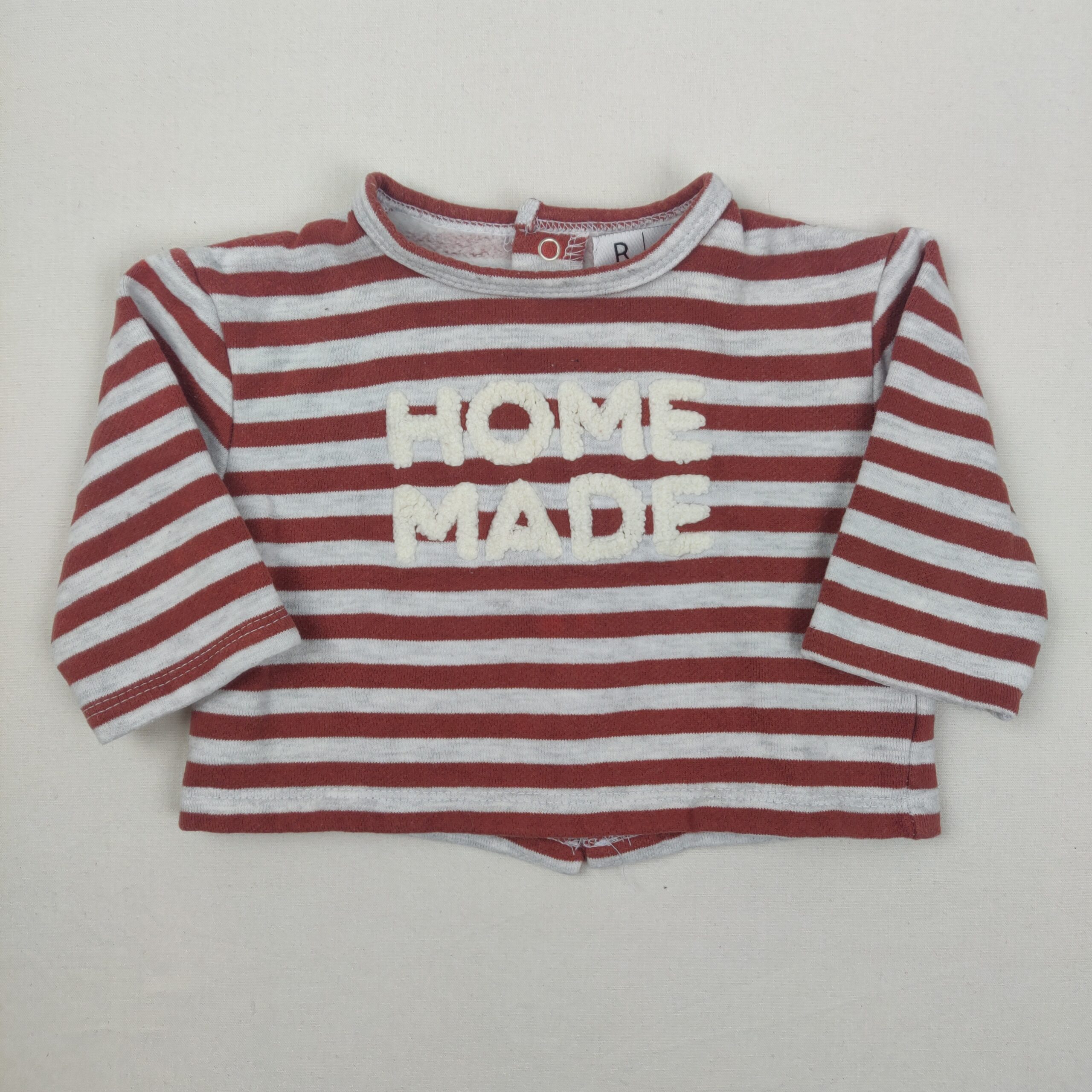 Autres commentaires : Sweat manches longues à rayures , col rond, motif « HOME MADE », fermeture par boutons pression au dos.
