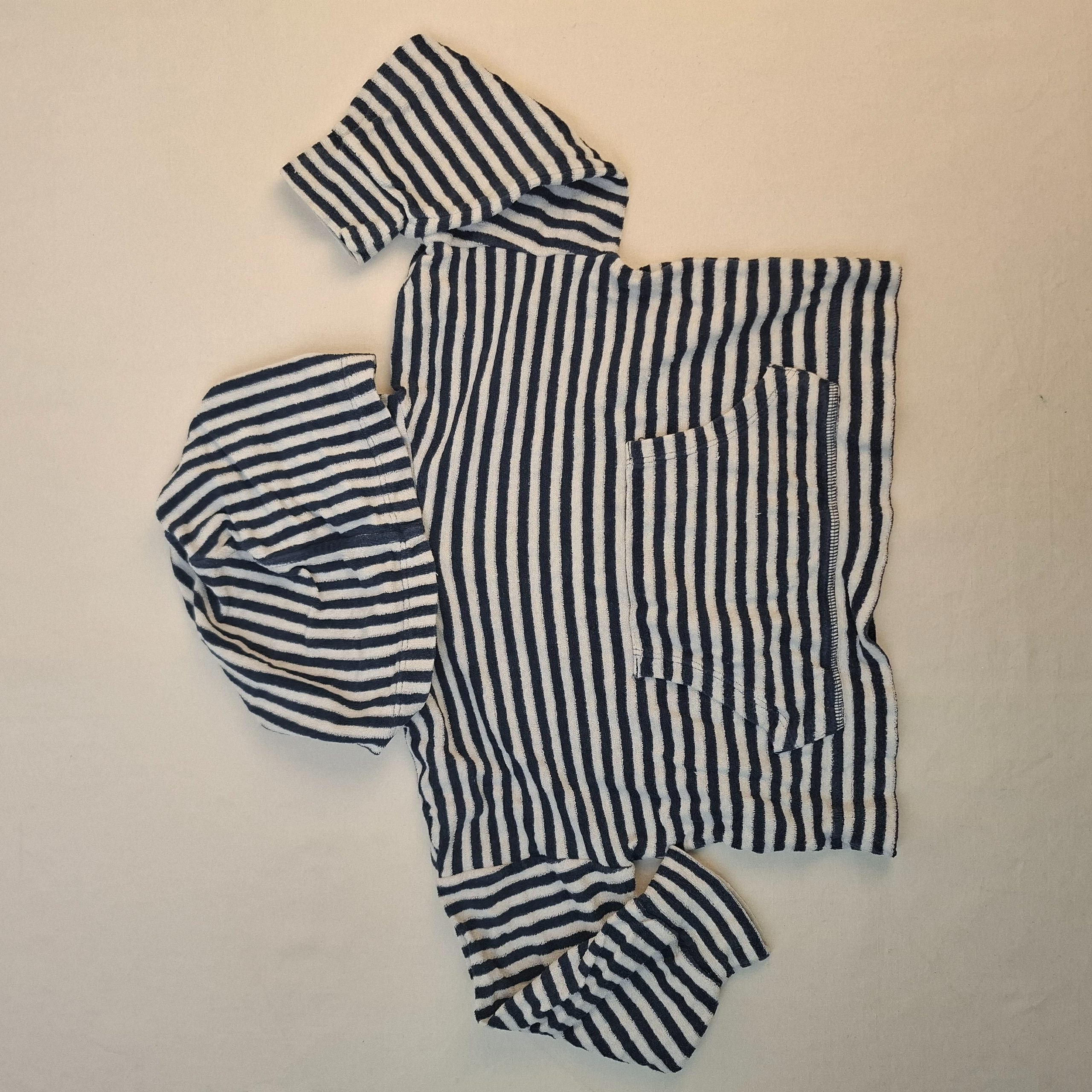 - Sweat à capuche en point mousse marin bleu et blanc.