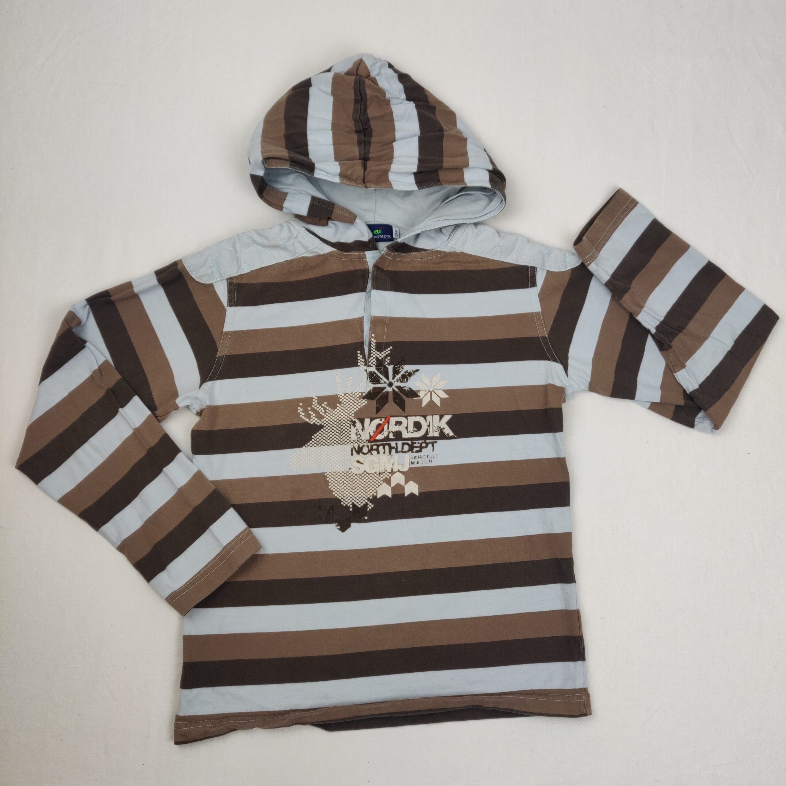 Autres commentaires : Sweat à capuche, rayures marron blanc caramel. fermeture par boutons pression