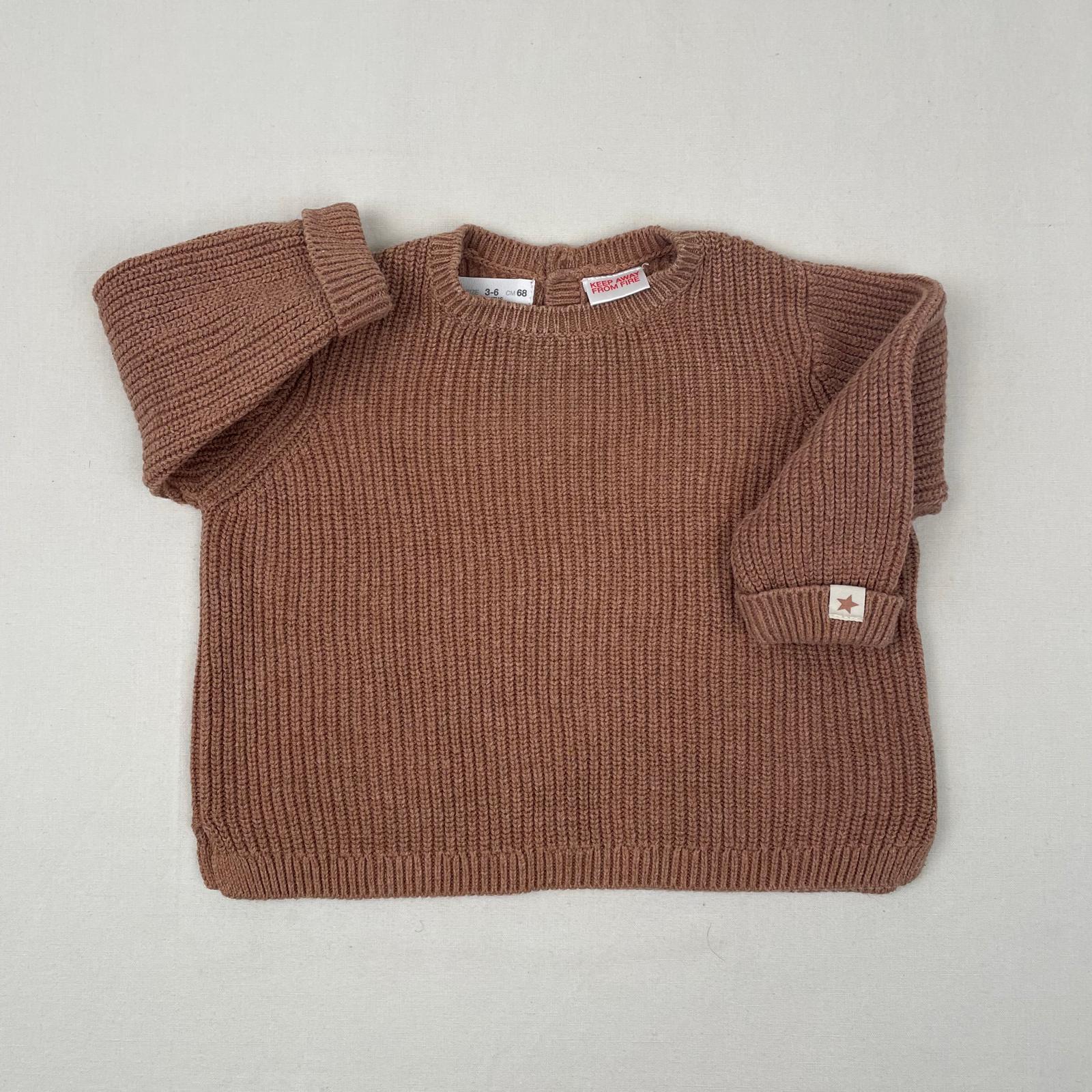 Autres commentaires : Sweat ZARA de tricots en marron clair, col rond, poignets retroussés, fermeture par boutons au dos.