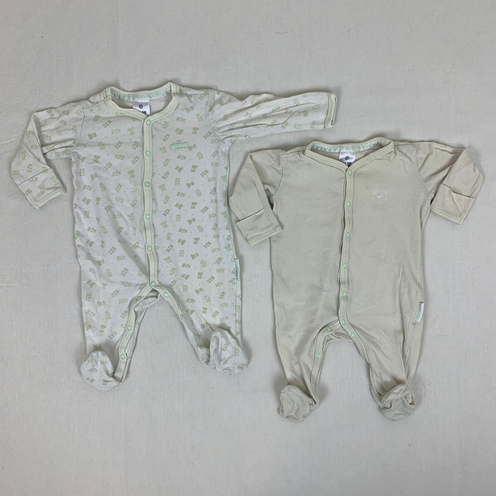 Autres commentaires : 2 pyjamas manches longues une piéce avec une fermeture centrale par boutons pression.