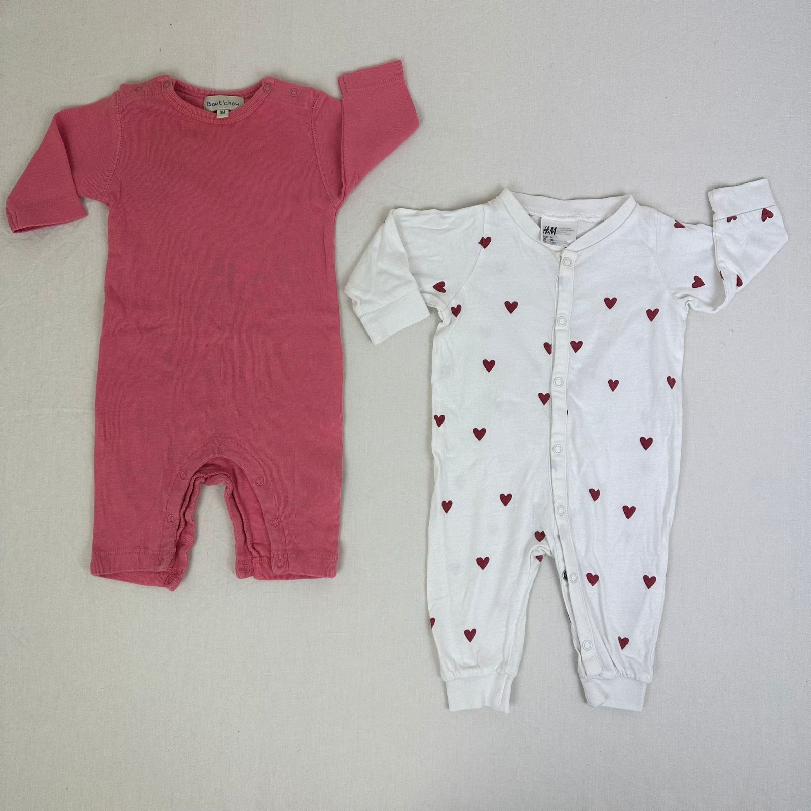 Autres commentaires : 2 pyjamas manches longues longues sans pieds: un blanc de H&M et un rose de Bout’chou.