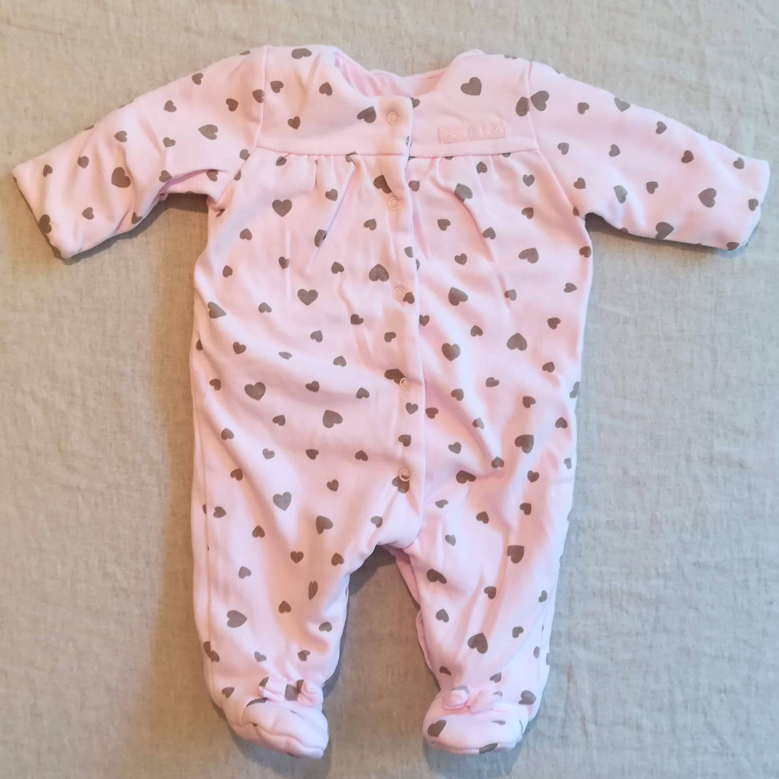 Autres commentaires : Pyjama dors-bien épais avec pieds – rose pâle avec motif coeurs couleur taupe
