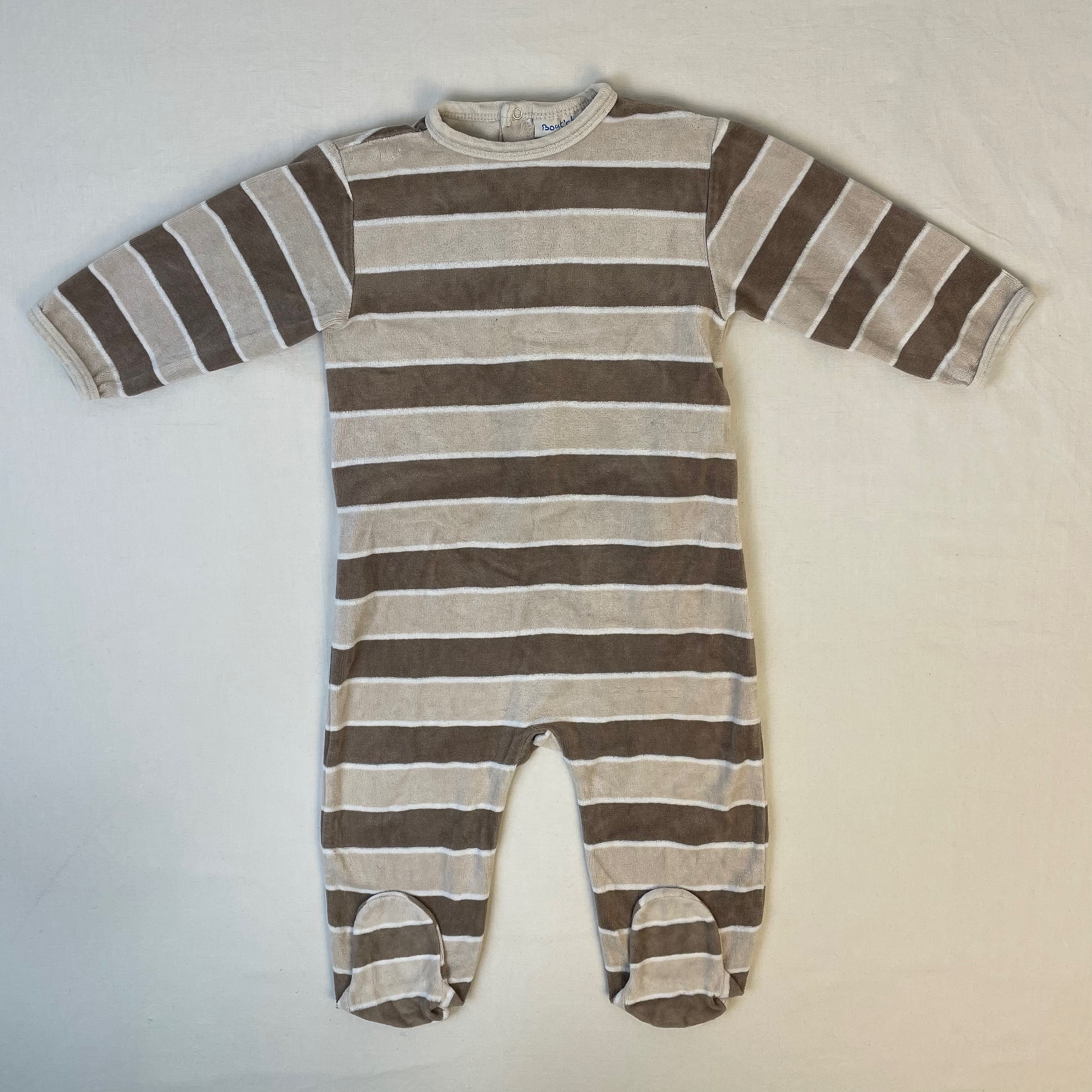 - Pyjama en velours marinière marron et gris, fermeture boutons pressions en haut du dos.