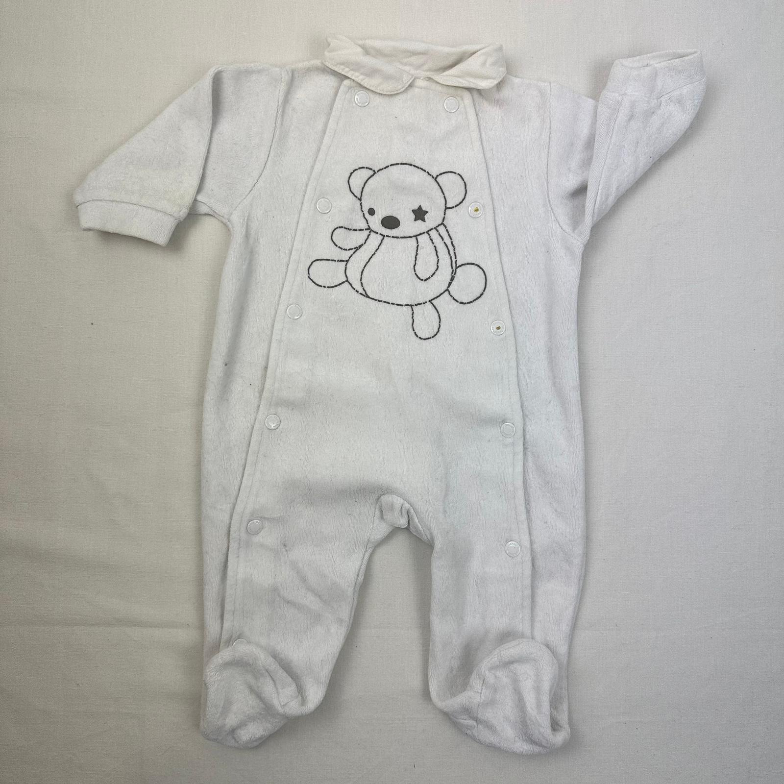 Autres commentaires : 25% polyester. Pyjama une piéce manches longues en velours blanc avec une fermeture devant par boutons pressions.